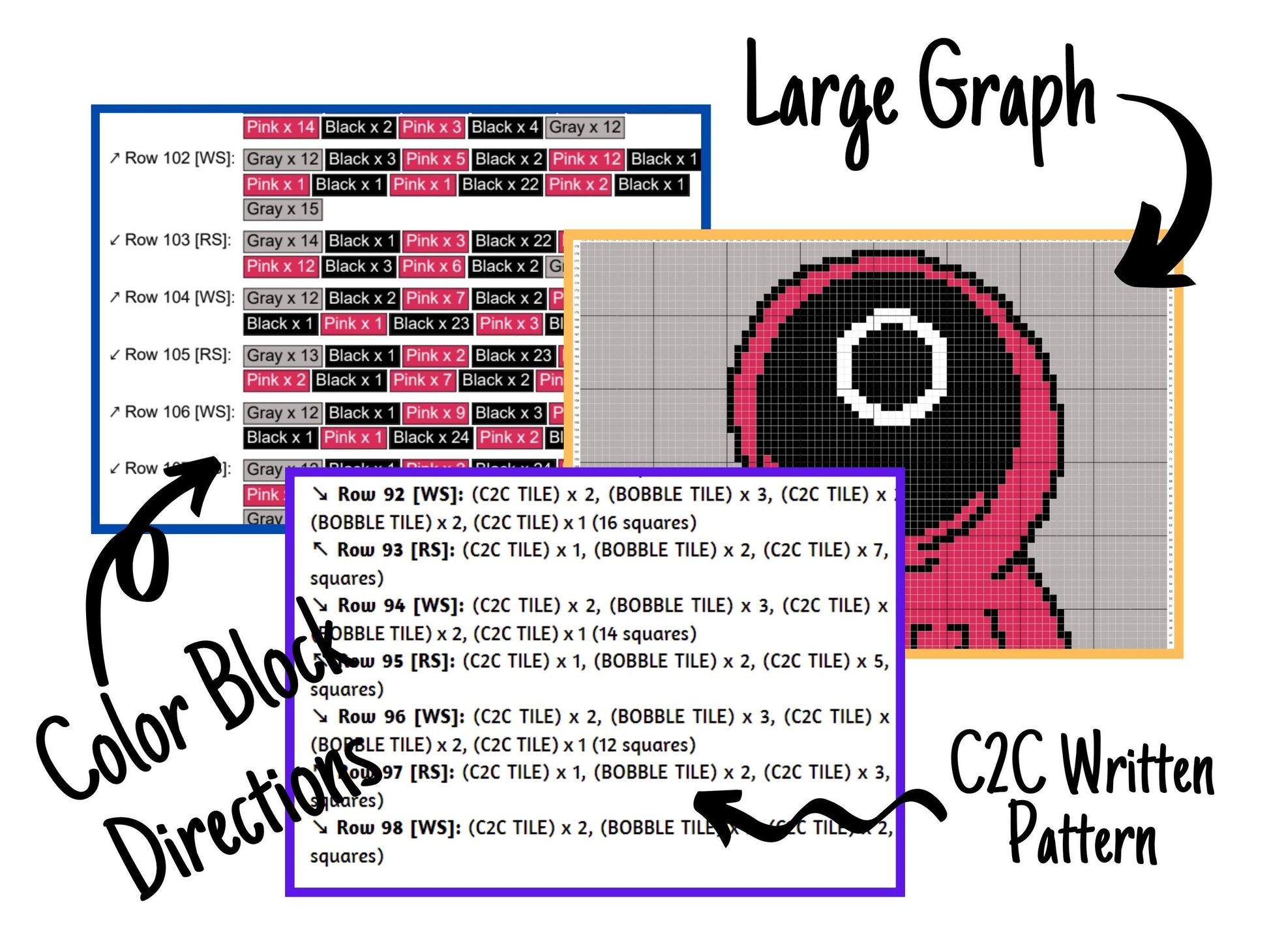 Red Minion Circle Worker Graph & Pattern C2C and Tapestry Crochet TV Characters Graphgan Pink Soldier Crochet Blanket Pink C2C Blanket Gift