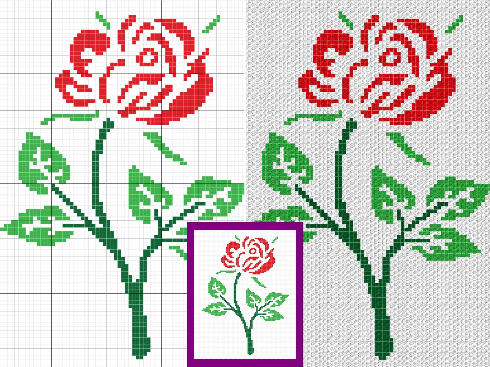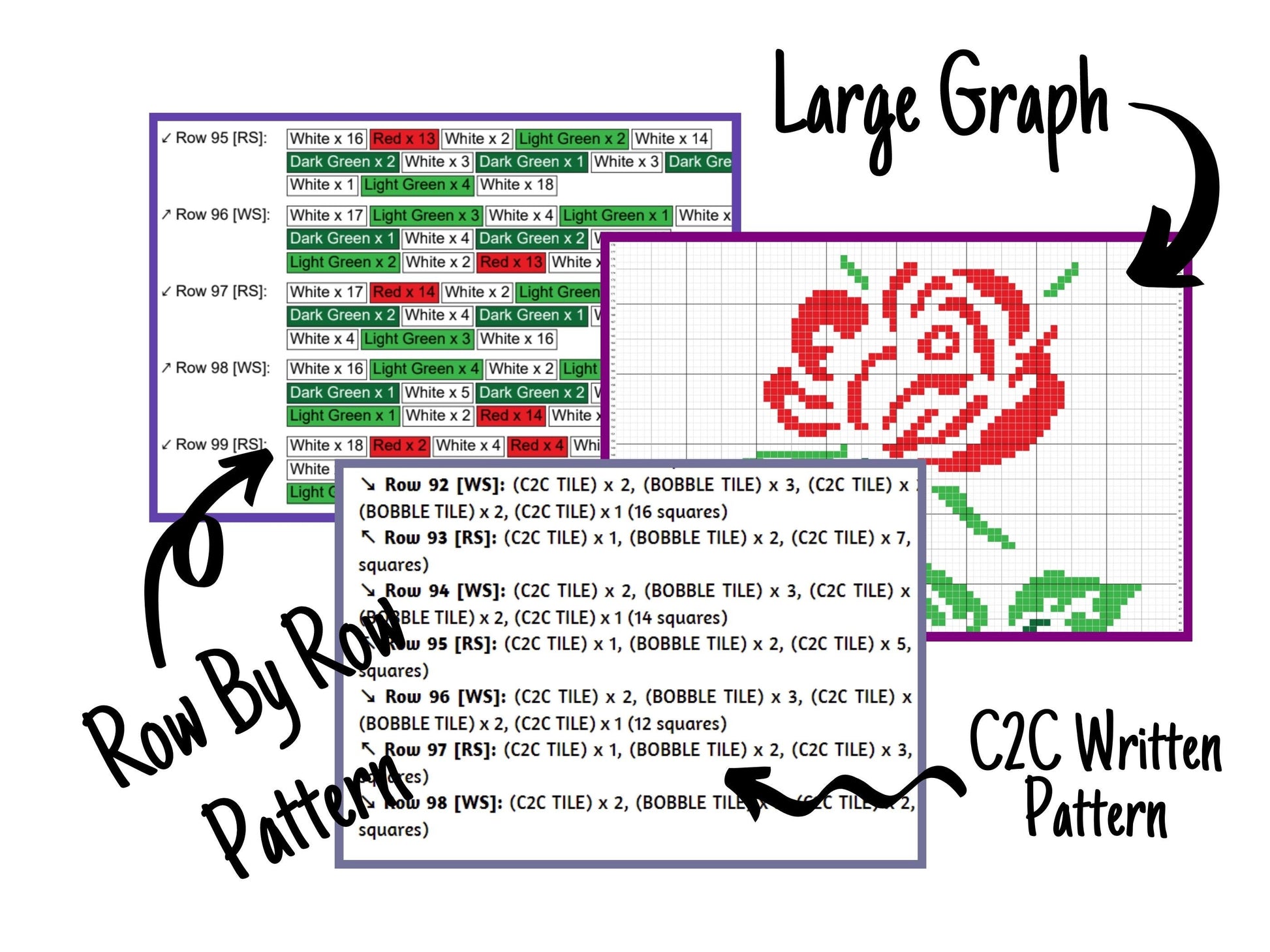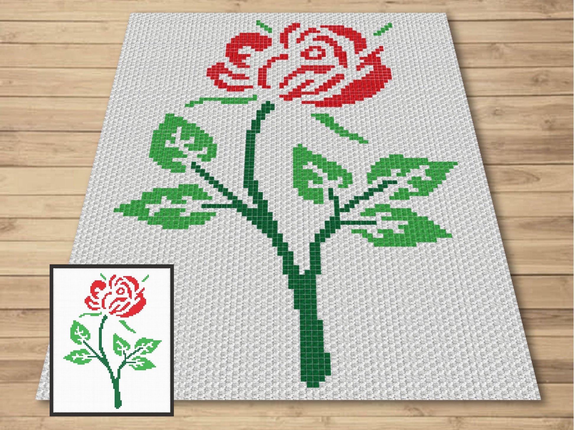 Red Rose Graph and Pattern C2C & Tapestry Crochet - Rose Flower Graphgan - C2C Crochet Rose Blanket - C2C Floral Baby Blanket - Rose Afghan