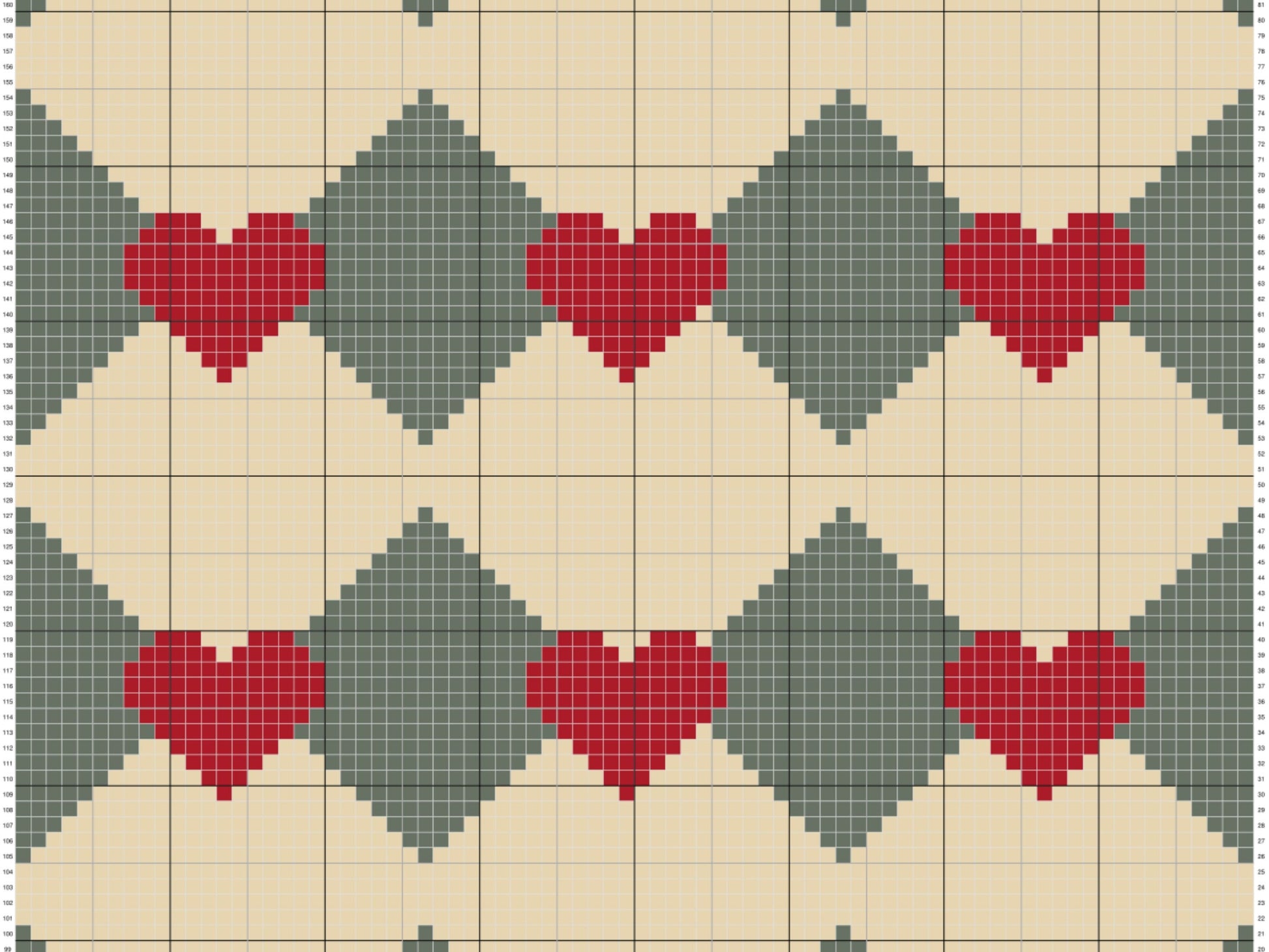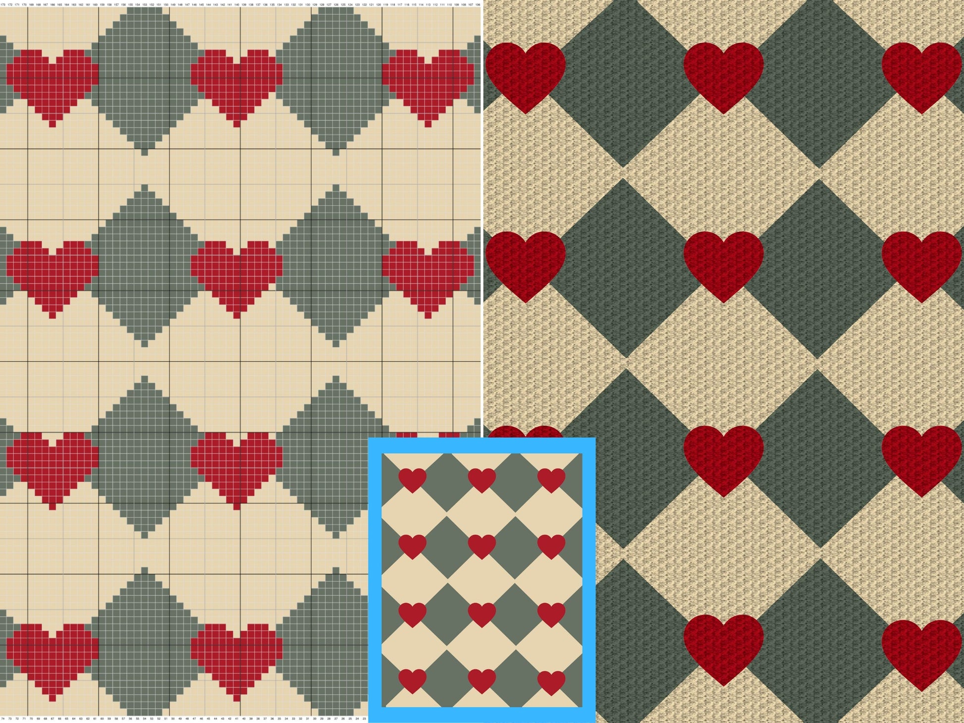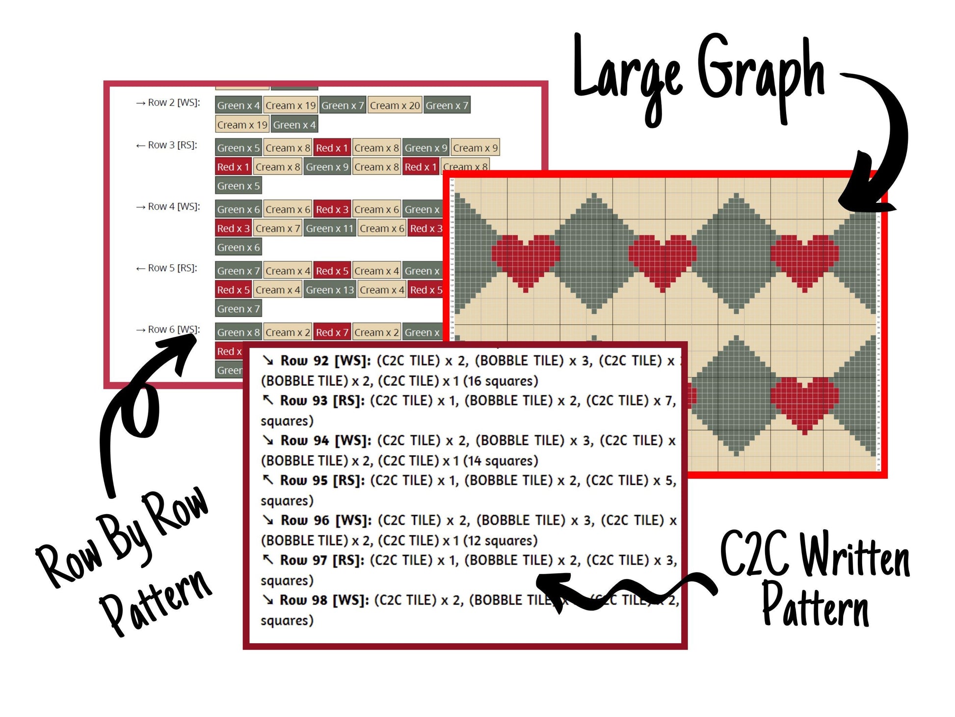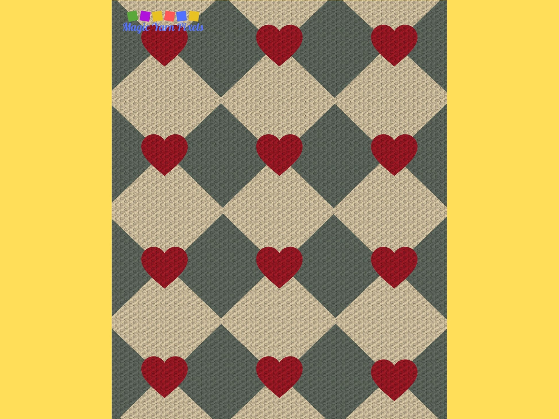 Retro Diamonds & Hearts Print Graph and Pattern C2C and Tapestry Crochet - Graphgan C2C Diamonds Blanket Pattern - C2C Retro Diamonds Afghan