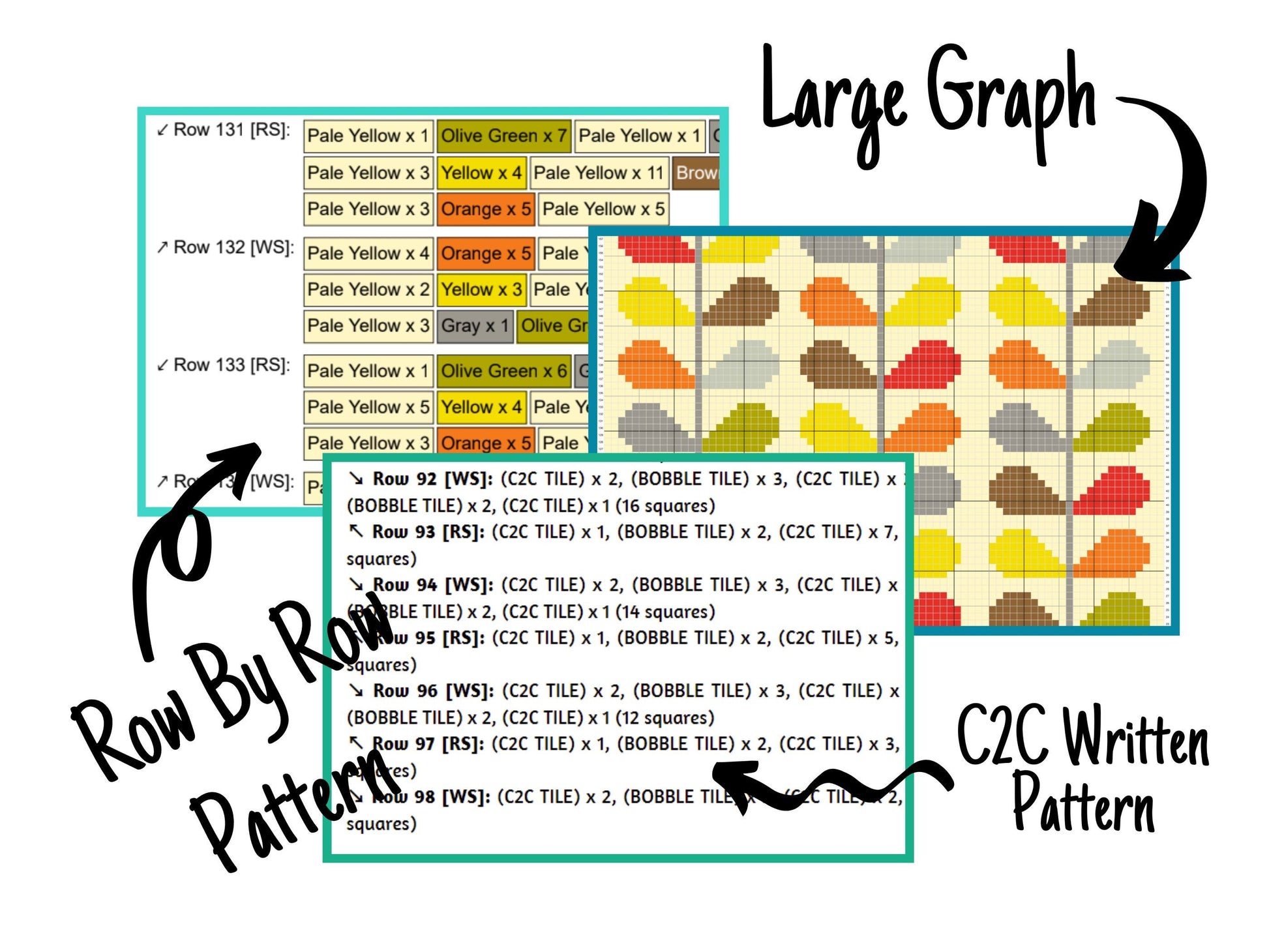 Retro Floral Leaf Pattern Graph and Pattern C2C & Tapestry Crochet- C2C Flower Graphgan Crochet Leaves Blanket- C2C Floral Baby Blanket Gift