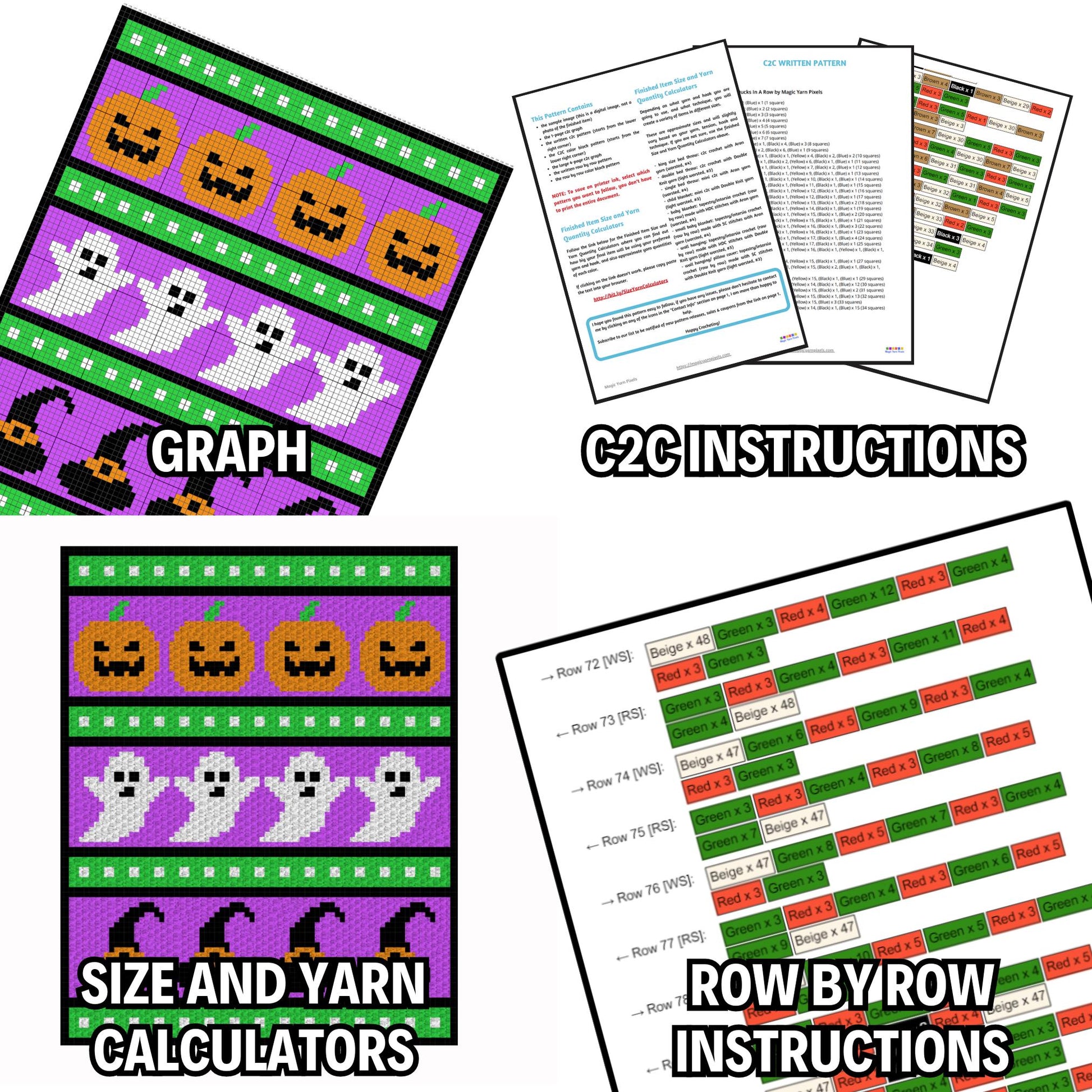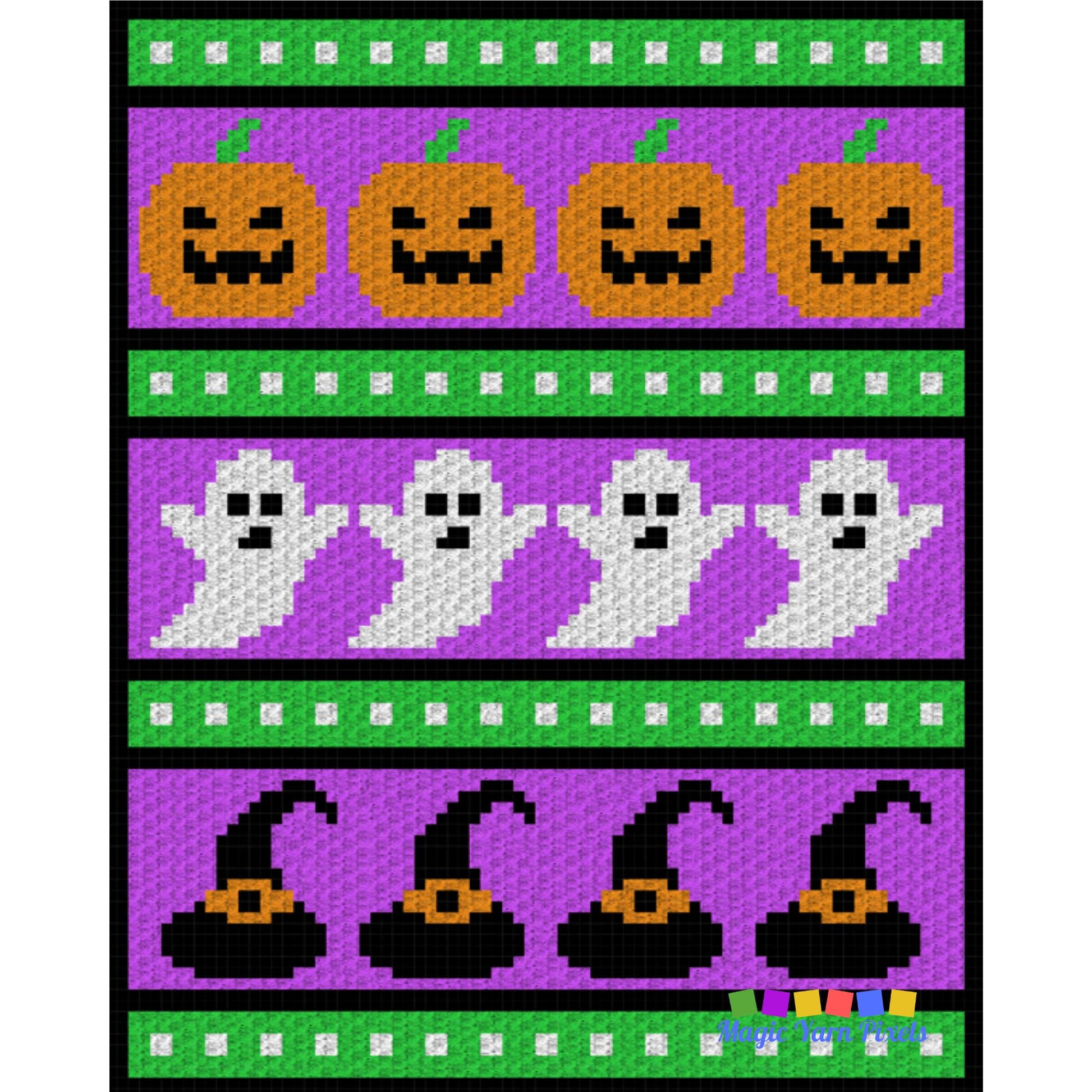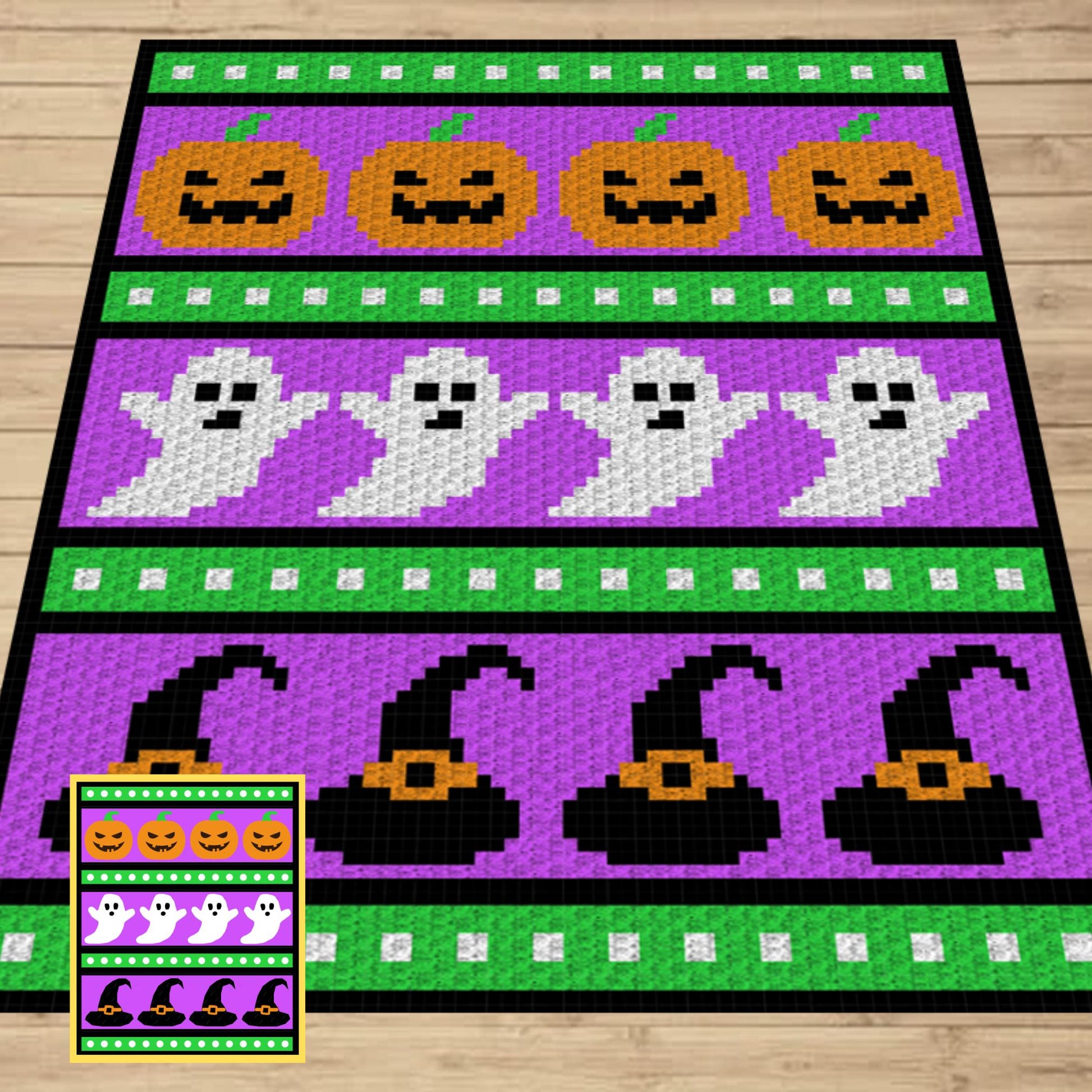 Spooky Halloween Graph and Pattern C2C & Tapestry Crochet | Halloween Graph Pattern C2C Halloween Blanket Pumpkin Afghan Ghost Witch Blanket