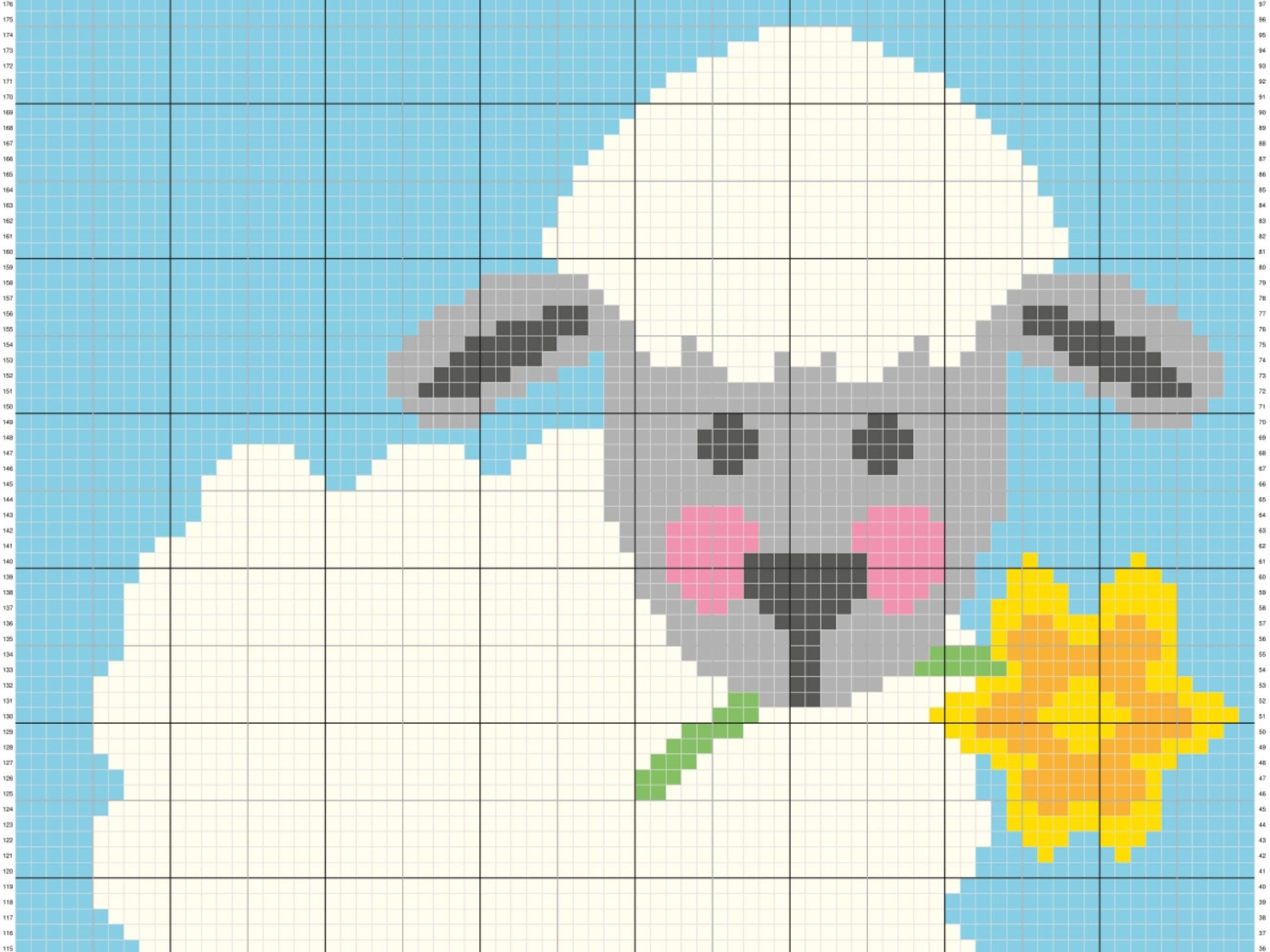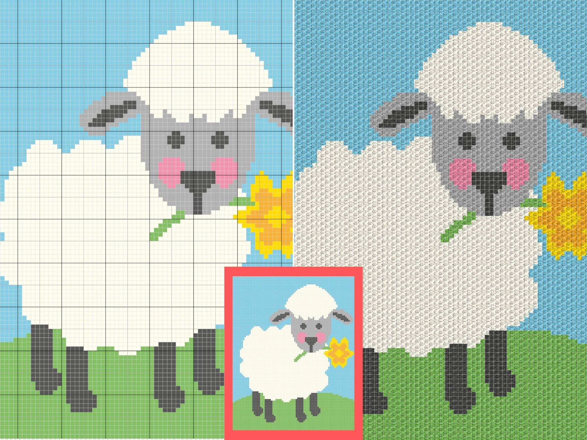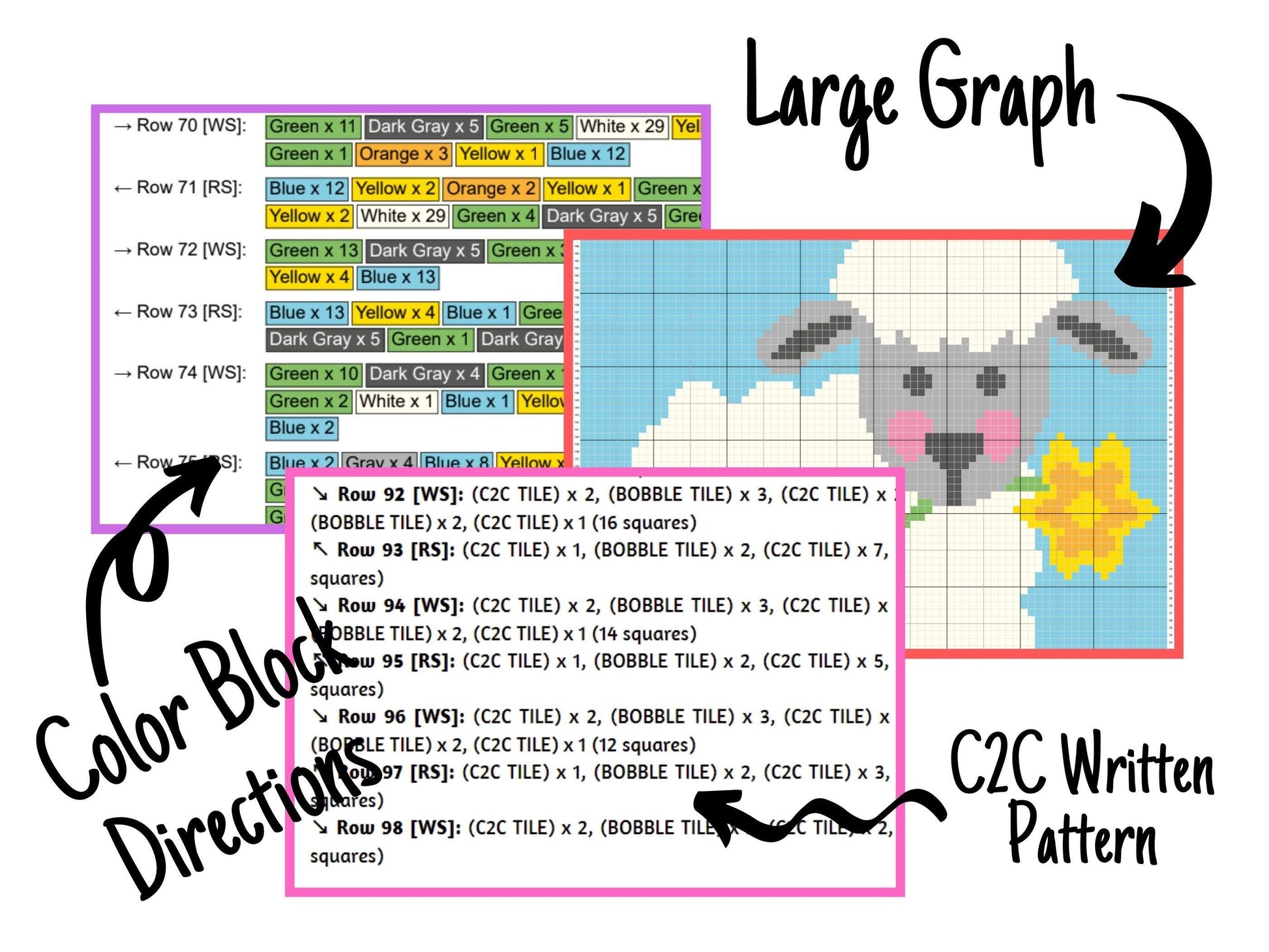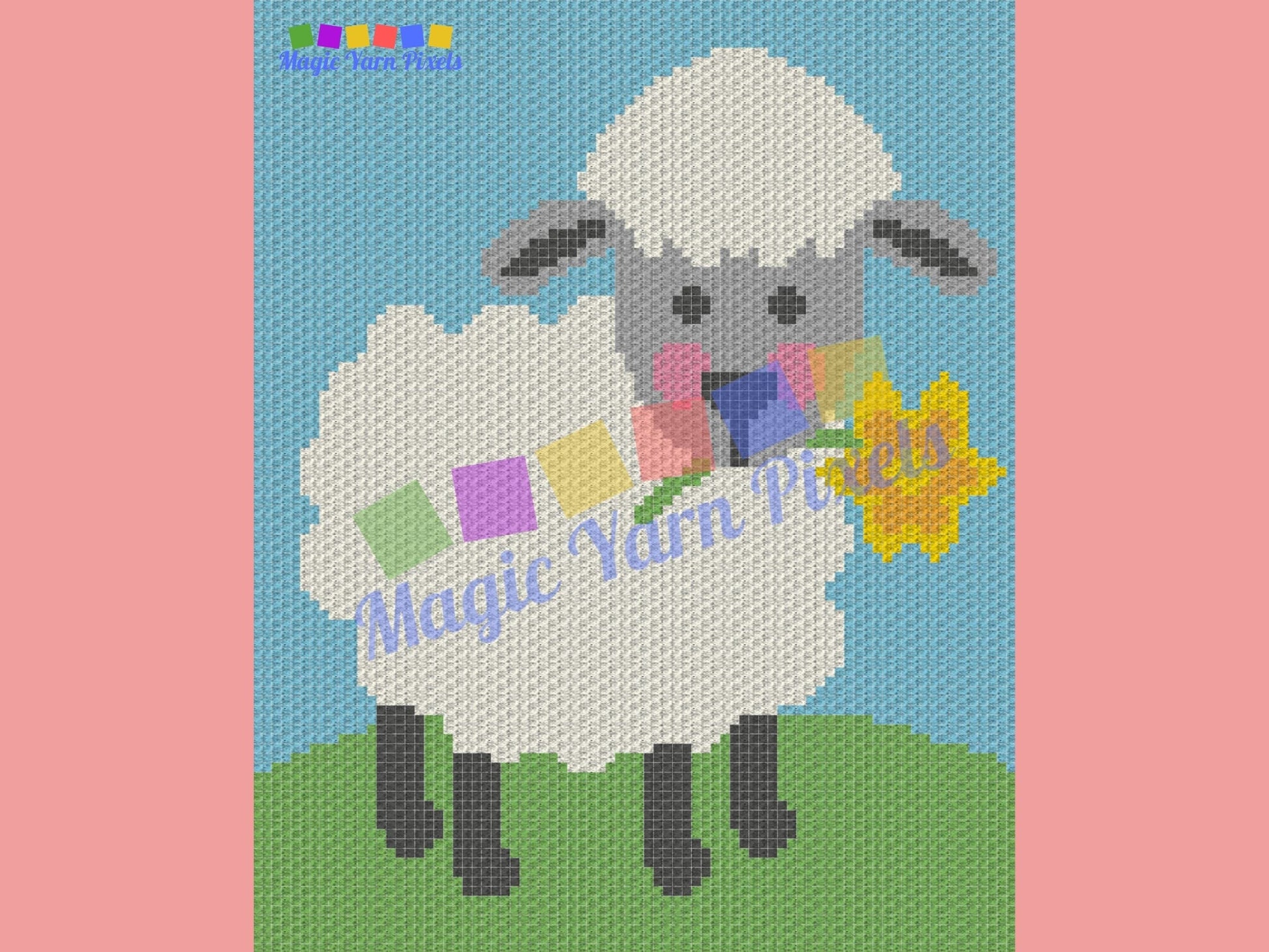 Spring Lamb With Daffodil Graph & Pattern C2C and Tapestry Crochet - Lamb C2C Graphgan Baby Lamb Crochet Blanket C2C Sheep Blanket Gift Baby