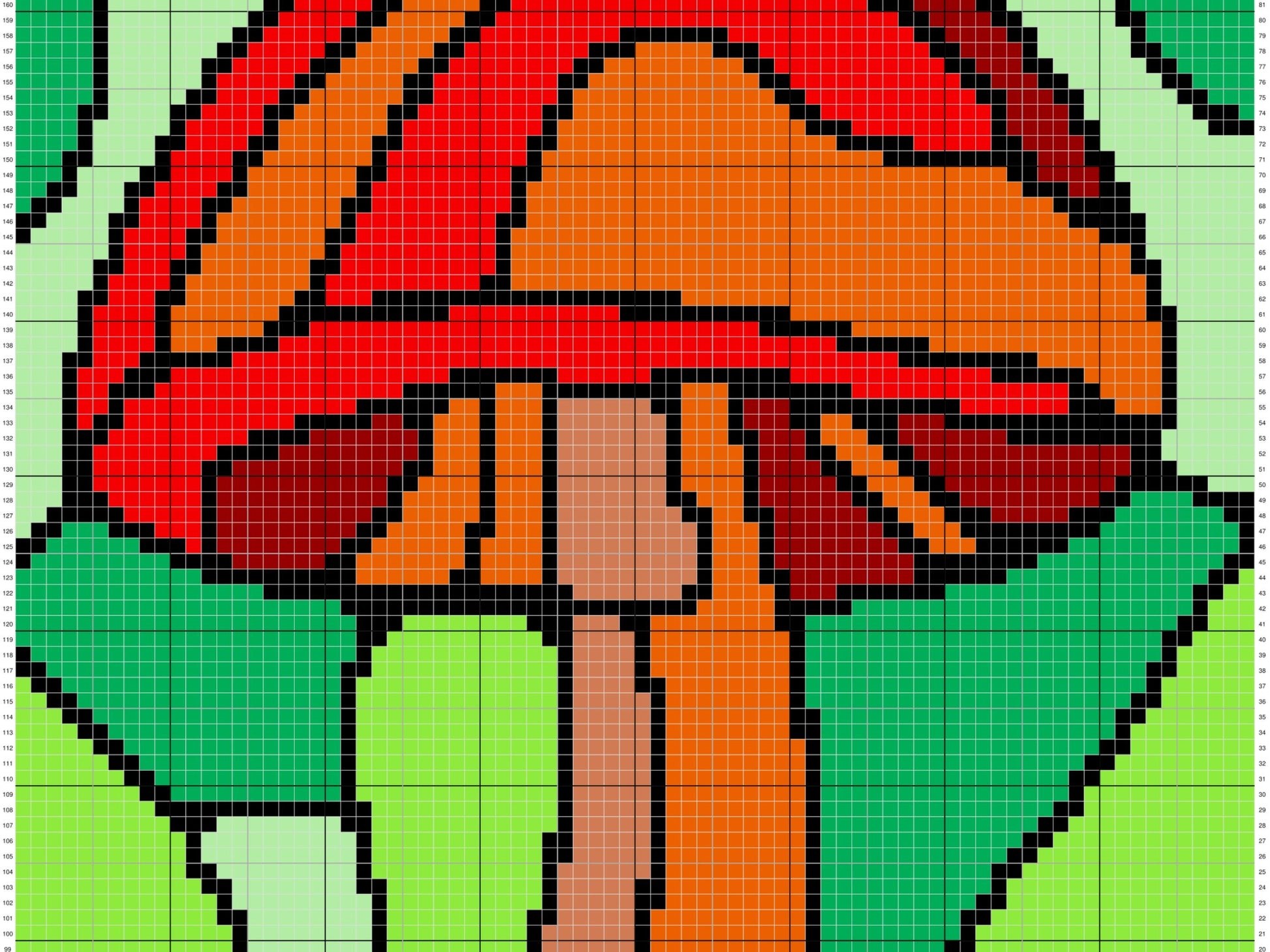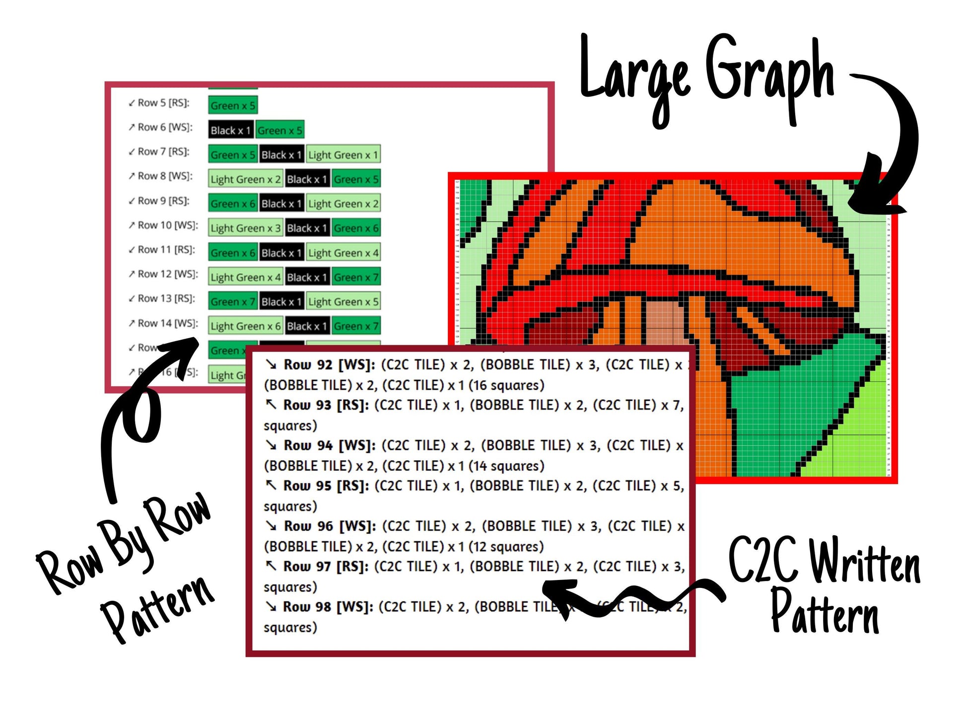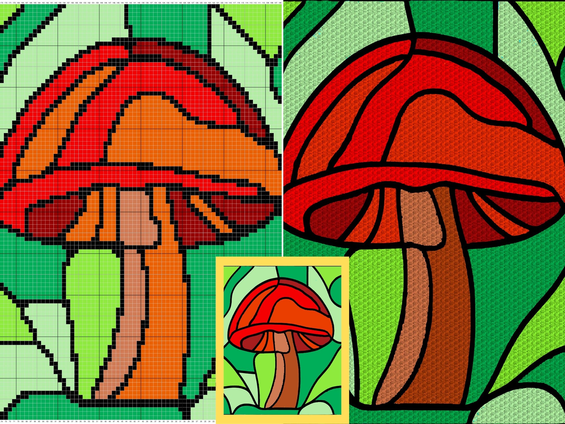 Stained Glass Mushroom Graph and Pattern C2C & Tapestry Crochet - Mushroom C2C Graphgans - Mushroom Crochet Blankets Patterns - C2C Mushroom