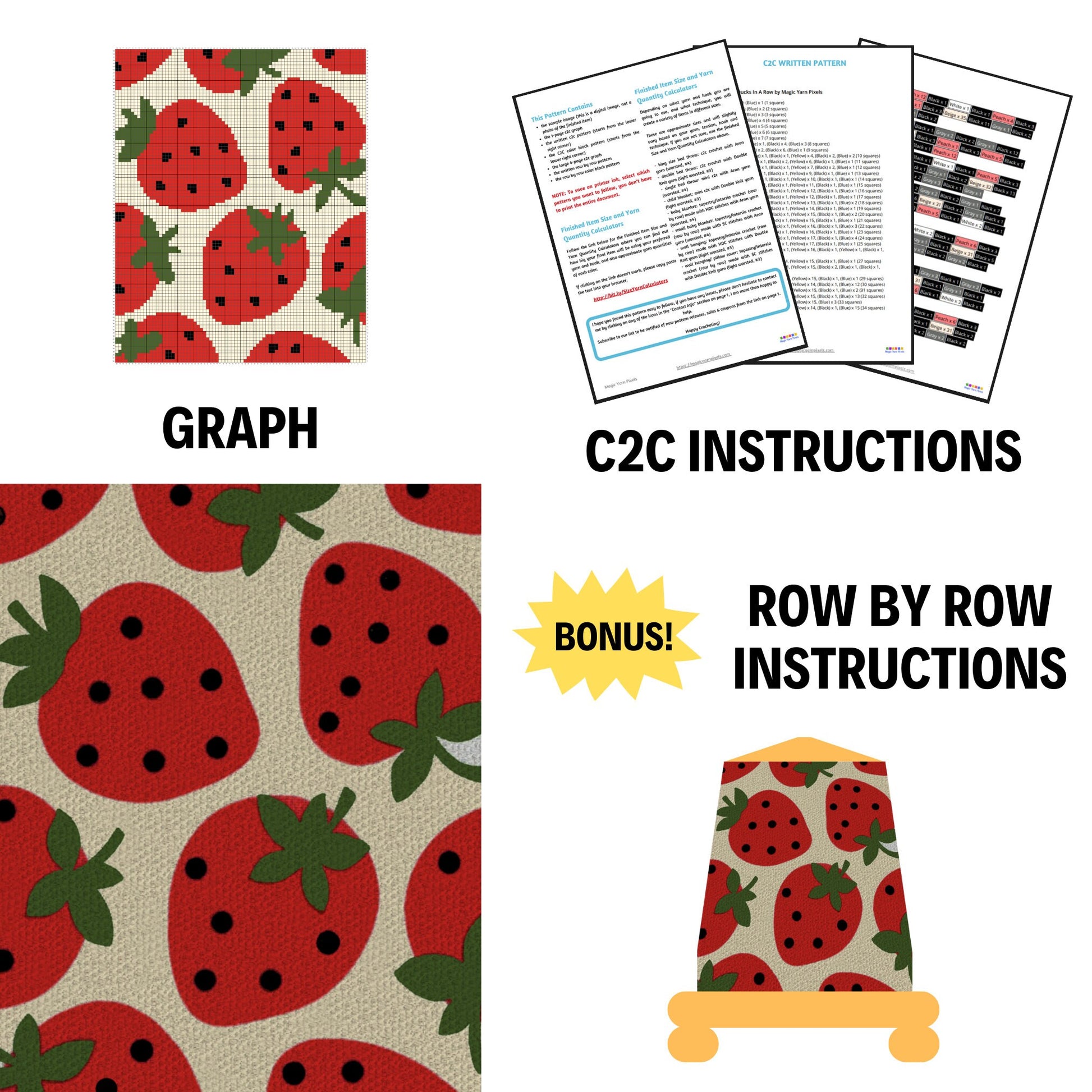 Summer Strawberry Print Graph and Pattern for C2C & Tapestry Crochet | C2C Crochet Strawberry Print C2C Strawberry Afghan Strawberry Blanket