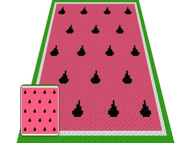 Summer Sweet Watermelon Graph + Written Pattern For C2C & Tapestry Crochet - C2C Fruit Graphghan - Fruit Crochet Blanket -Crochet Afghan