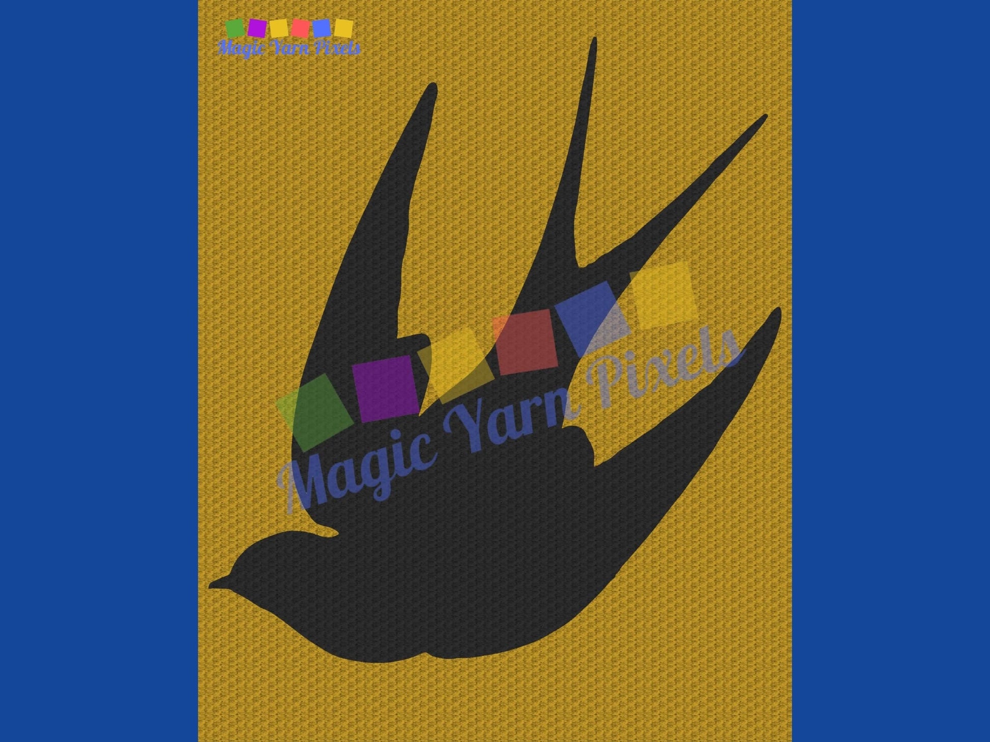 Swallow Silhouette Graph & Pattern C2C and Tapestry Crochet - Crochet Birds Graphgan - Bird Lover Gift Crochet Blanket - C2C Bird Blankets