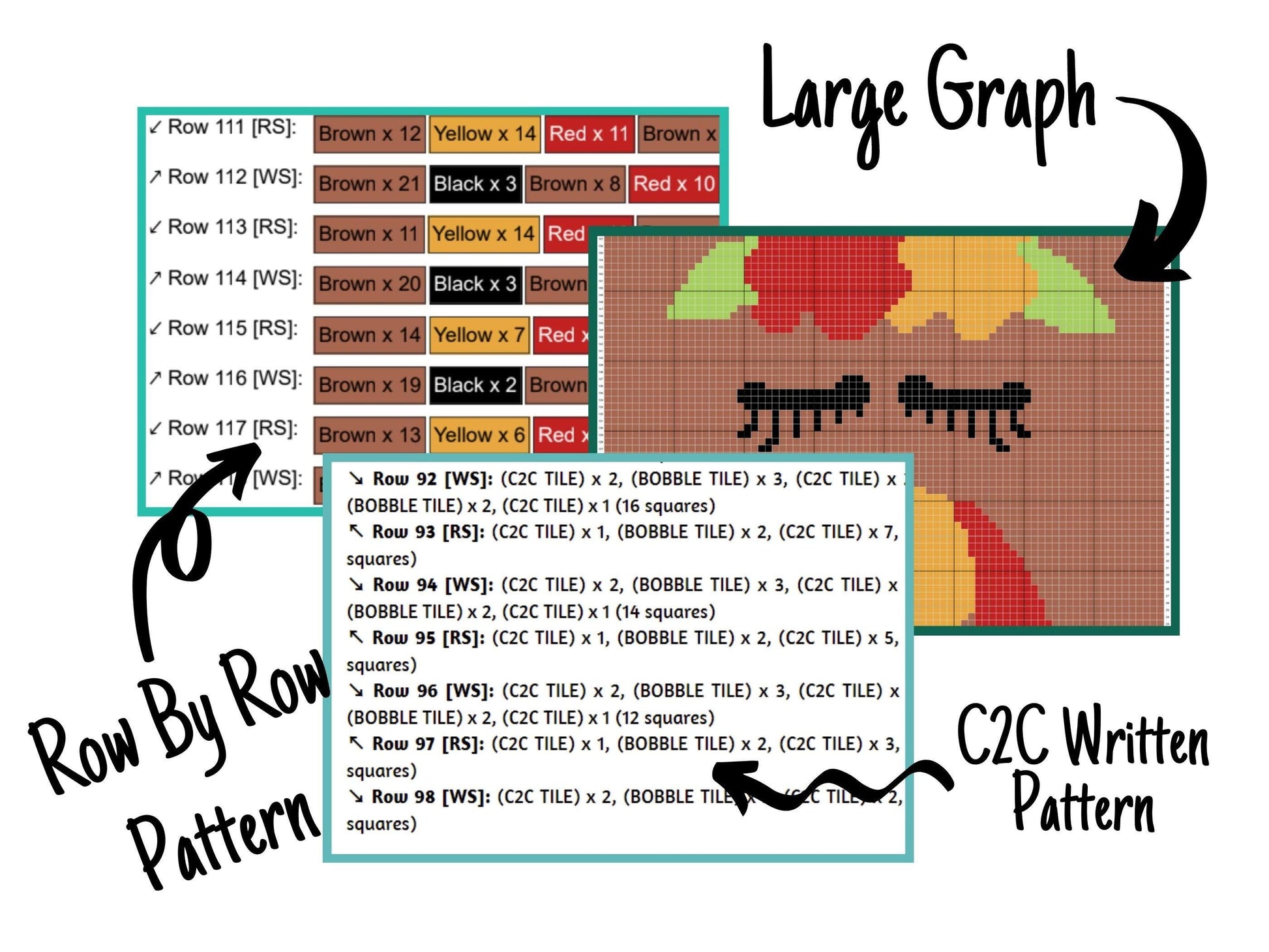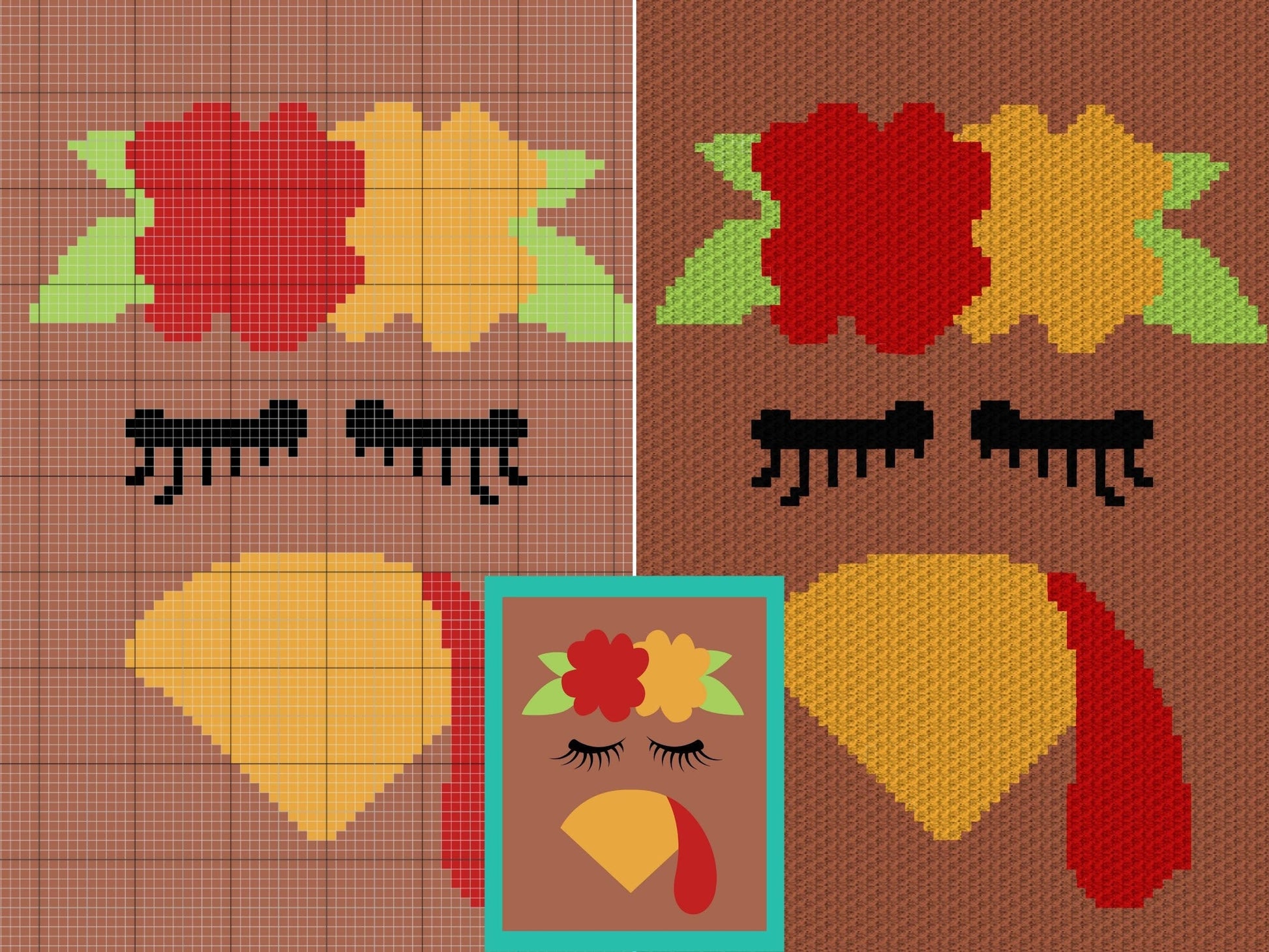 Thanksgiving Turkey Chick Graph and Pattern C2C & Tapestry Crochet - C2C Thanksgiving Graphgan Turkey C2C Pattern - C2C Fall Crochet Blanket