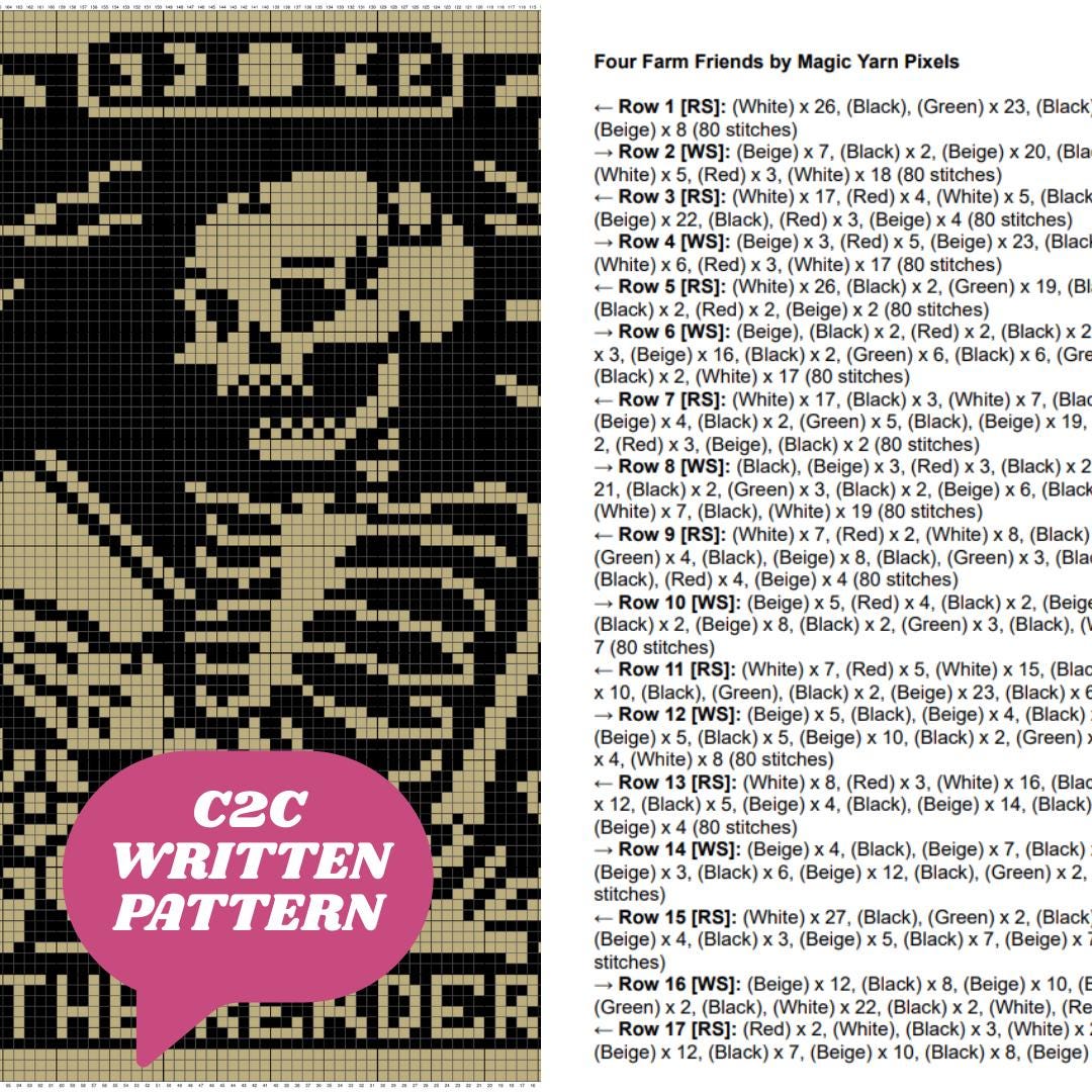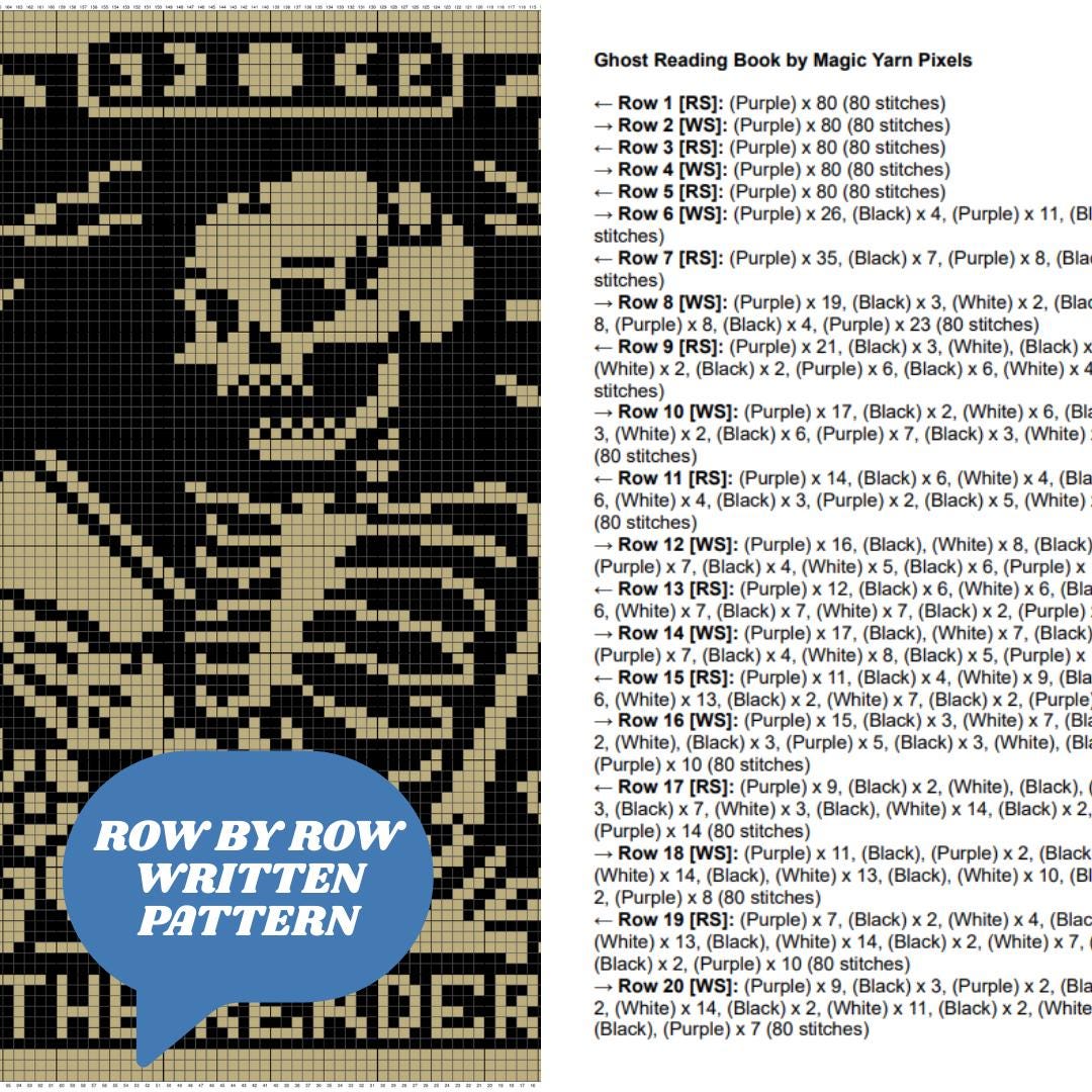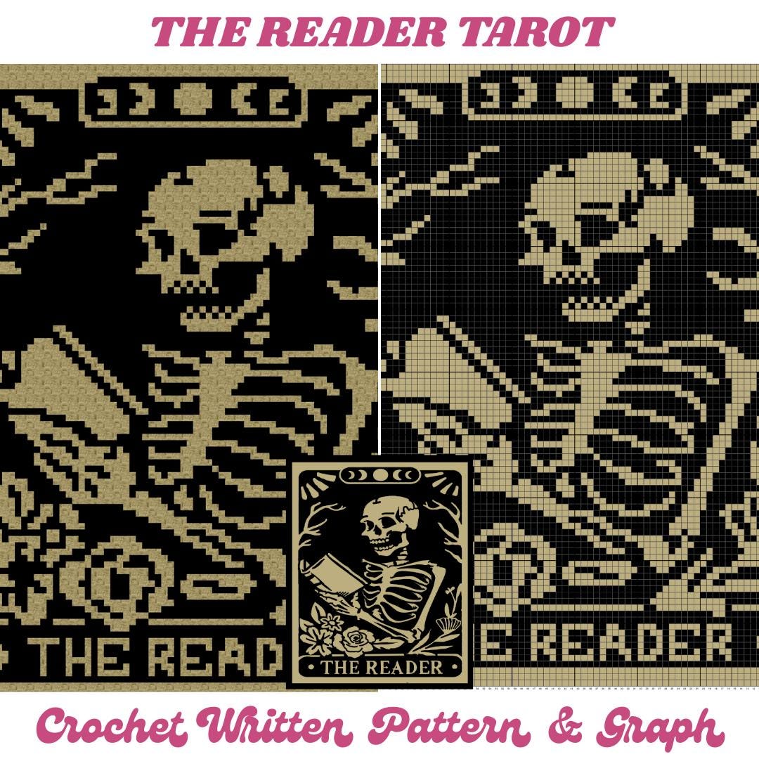The Reader Tarot Crochet Blanket Pattern Chart & Written Pattern For C2C + Tapestry Crochet | C2C Crochet Skull Blanket Goth Book Lover Gift