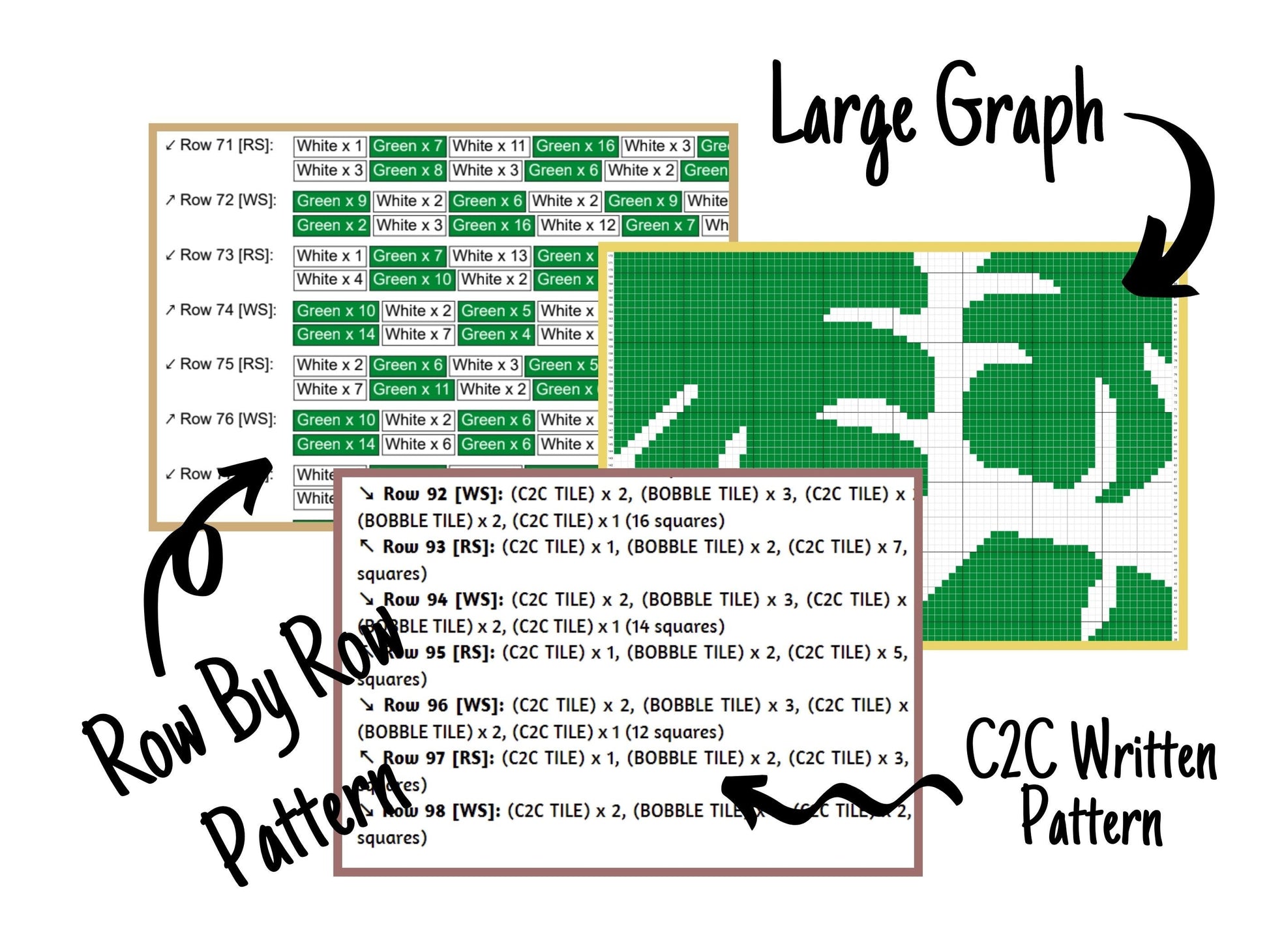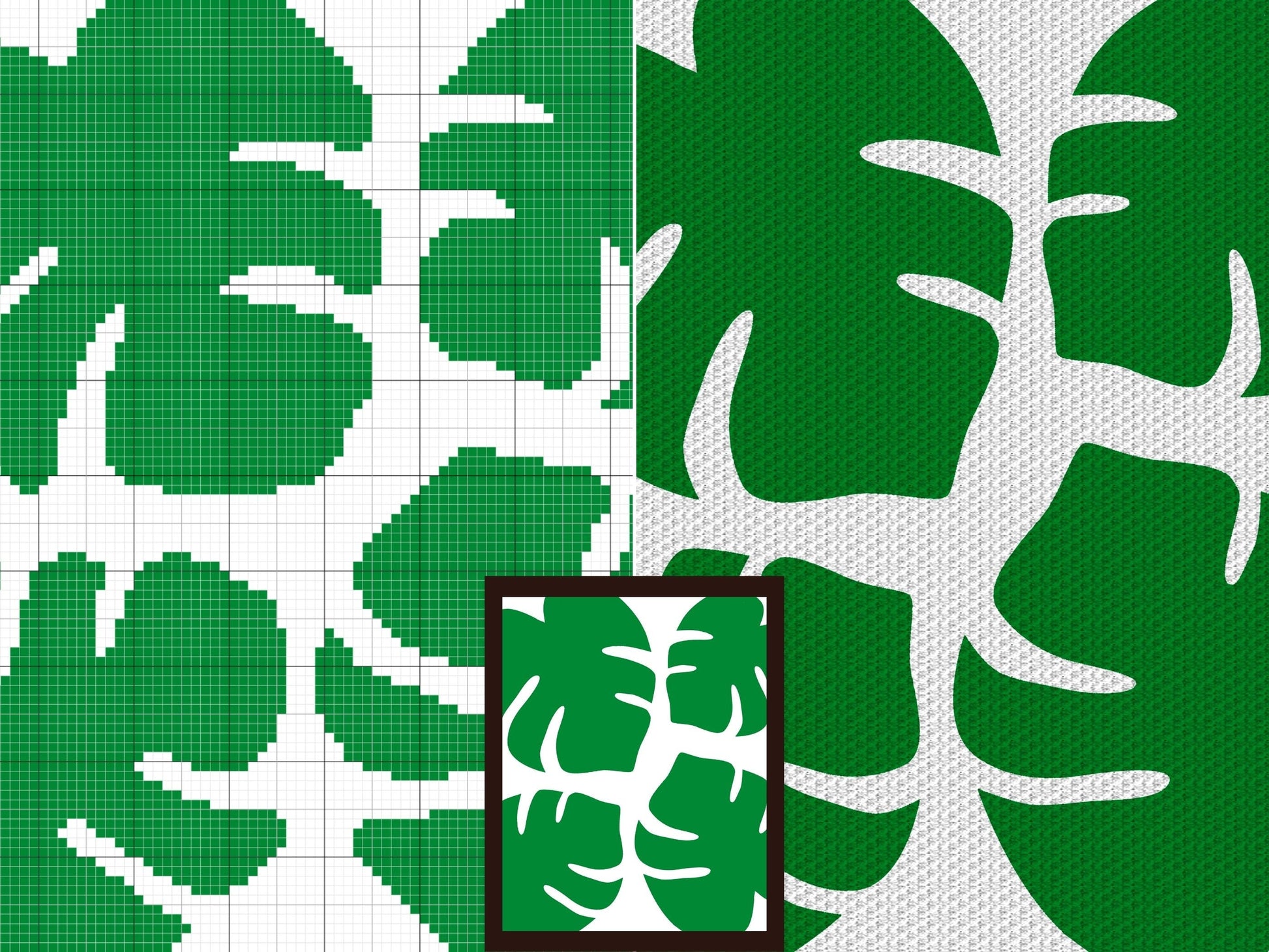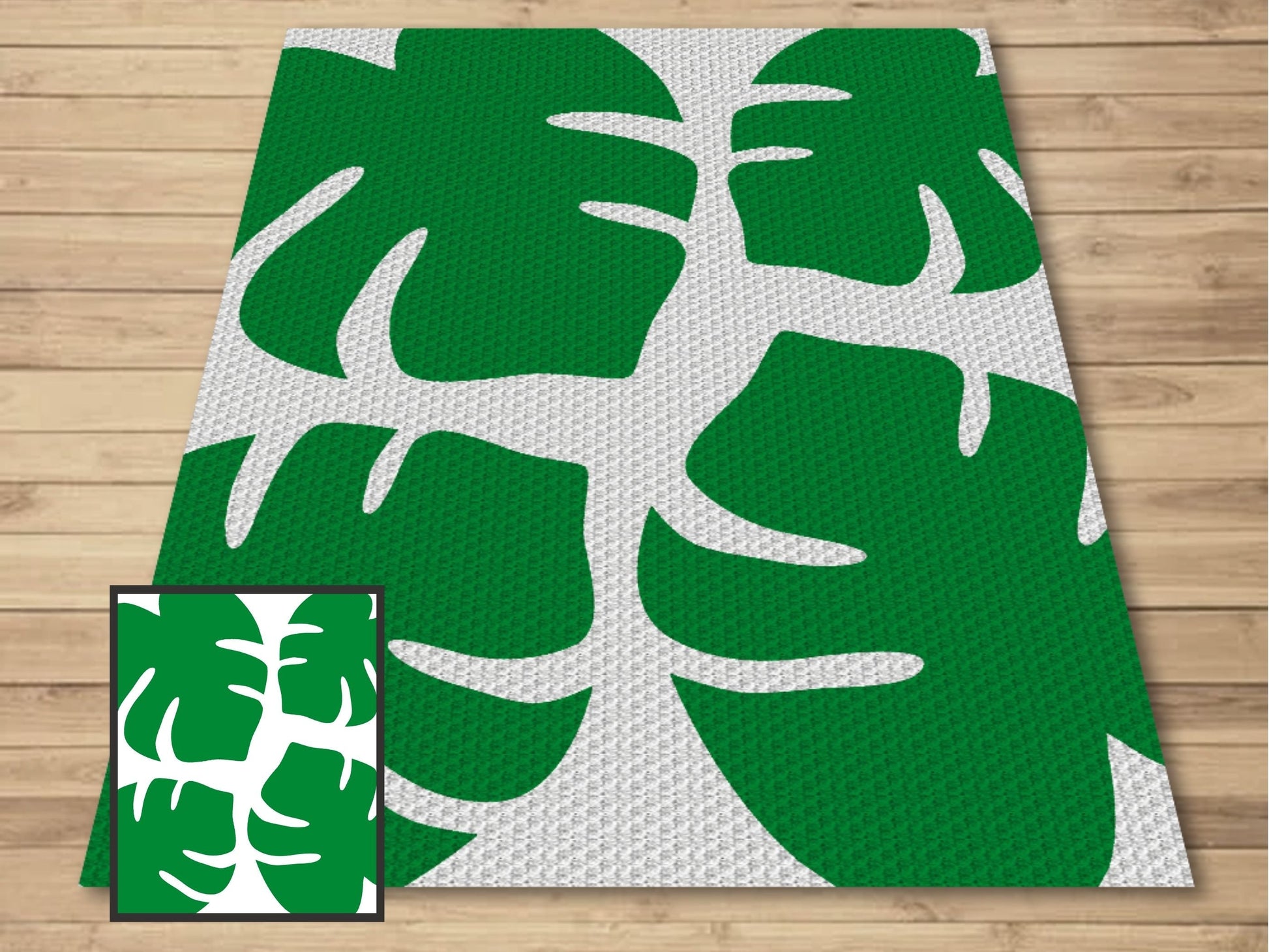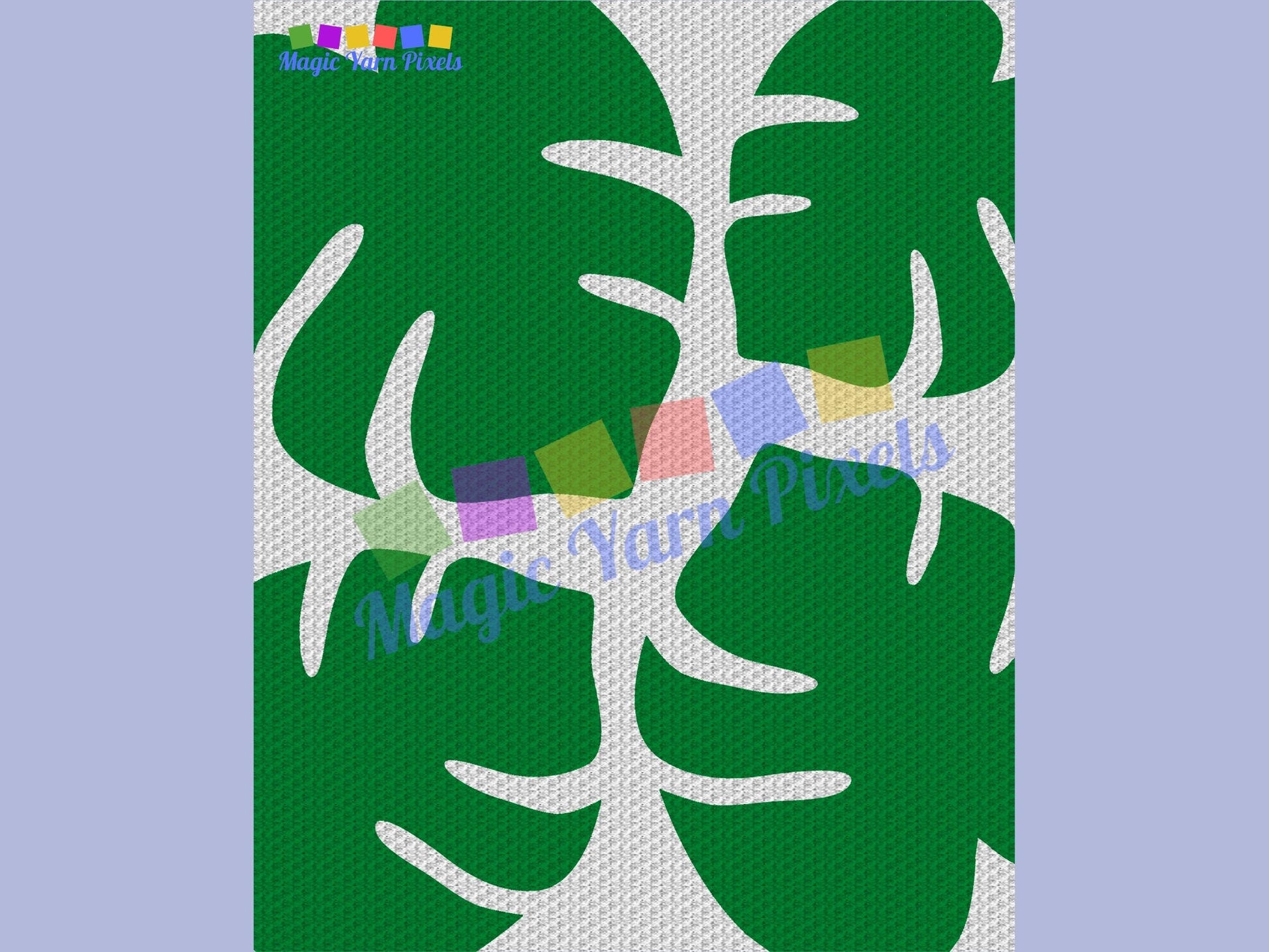 Tropical Monstera Leaf Print Graph and Pattern C2C & Tapestry Crochet-Monstera Graphgan-Crochet Monstera C2C Blanket - Tropical Baby Blanket