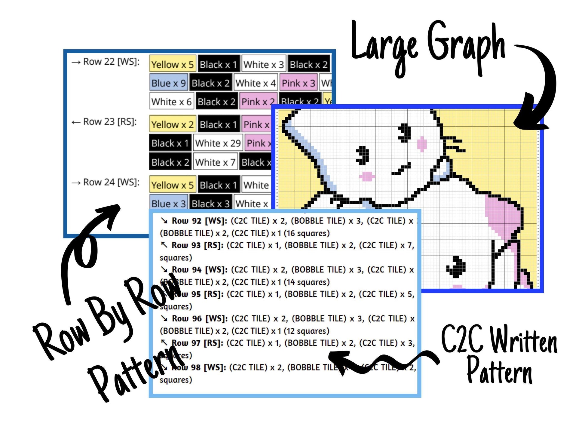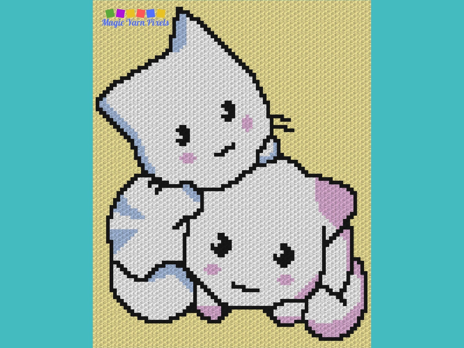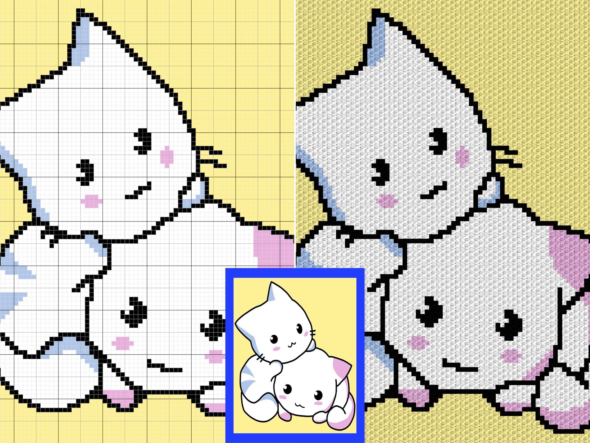 Two Kawaii Cats Graph + Written Pattern For C2C & Tapestry Crochet - Kawaii Cats Crochet Pattern - C2C Blanket Pattern Gifts For Cat Lovers