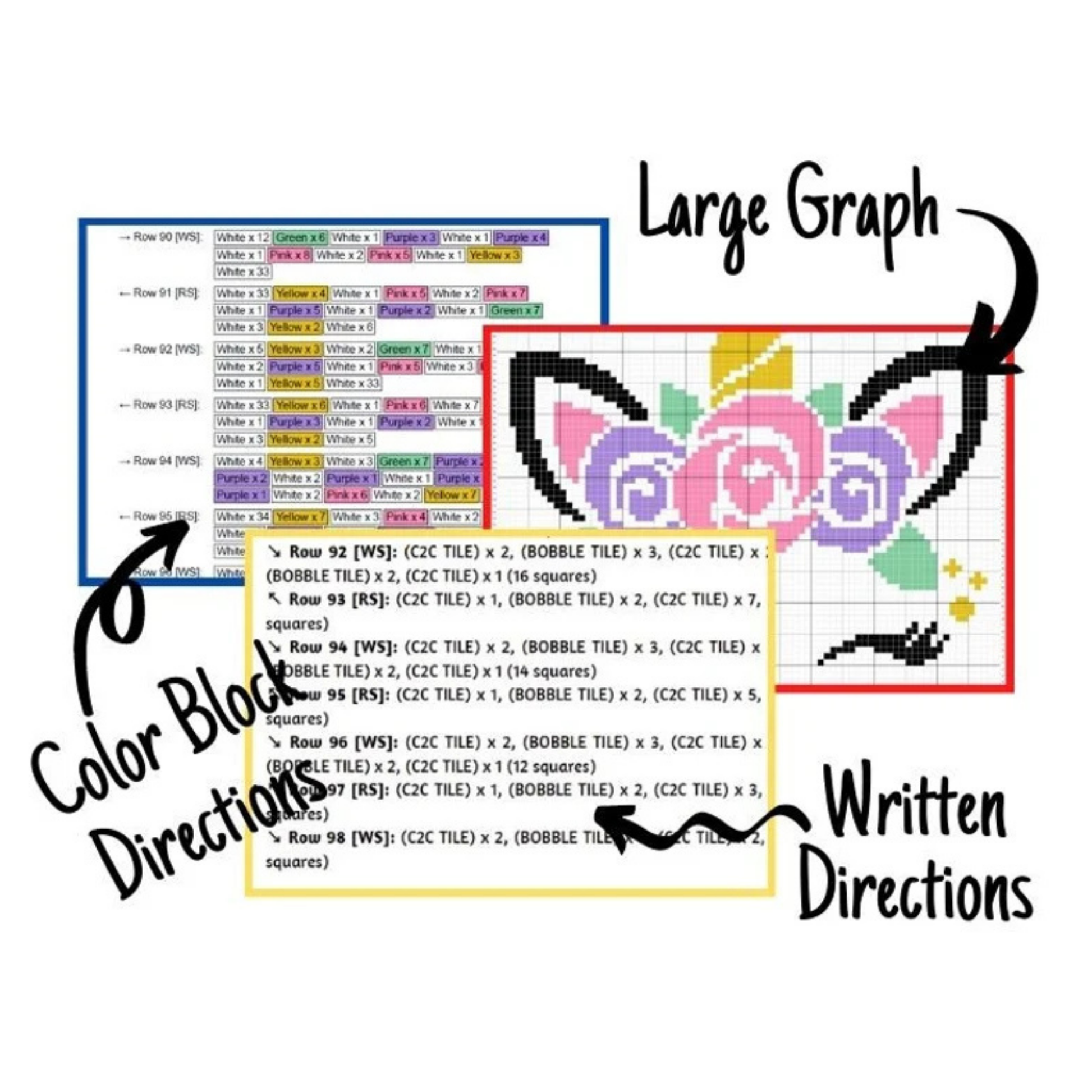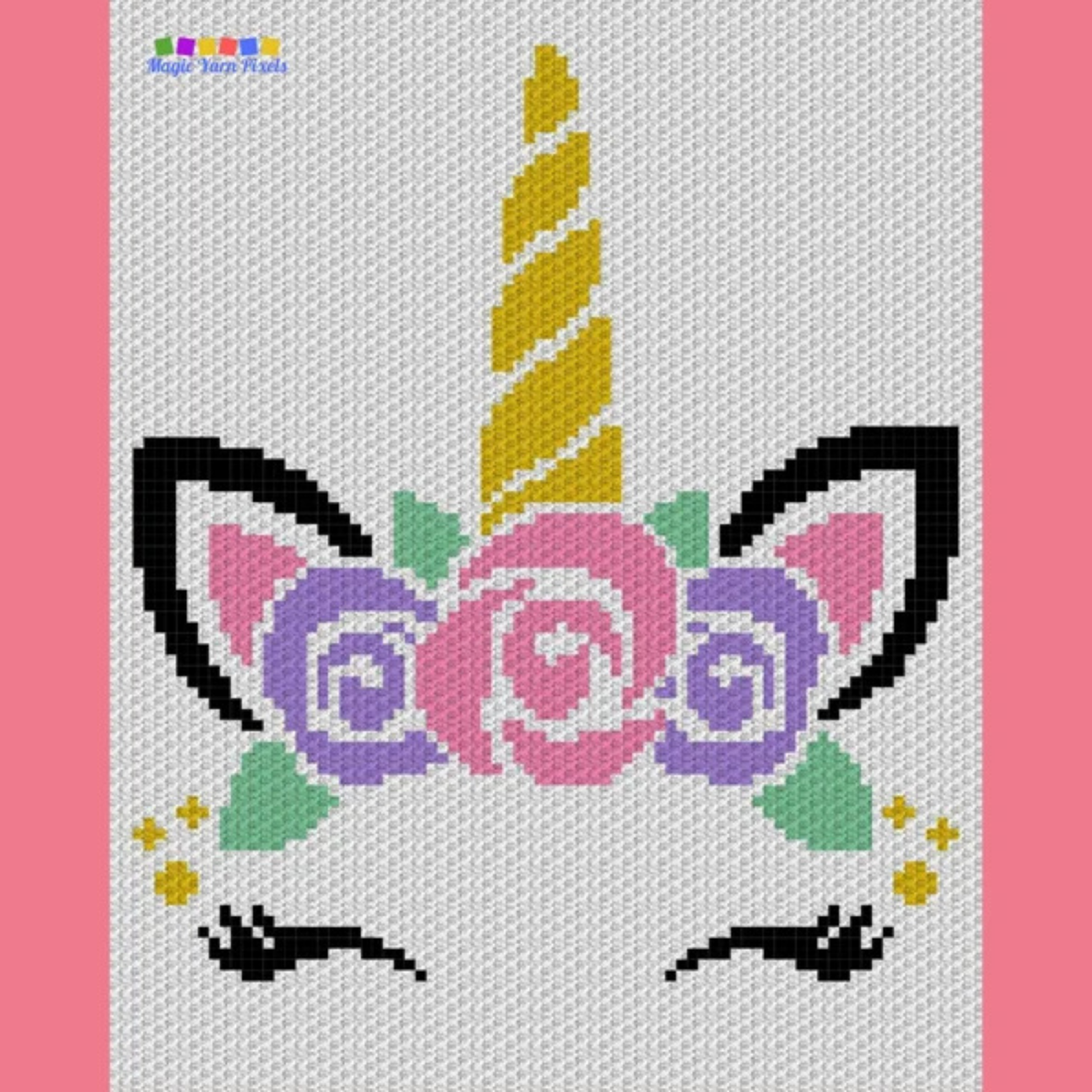 Unicorn Princess Graph + Written Pattern For C2C & Tapestry Crochet - Unicorn C2C Crochet Pattern - Animal Crochet Blanket - Unicorn Blanket