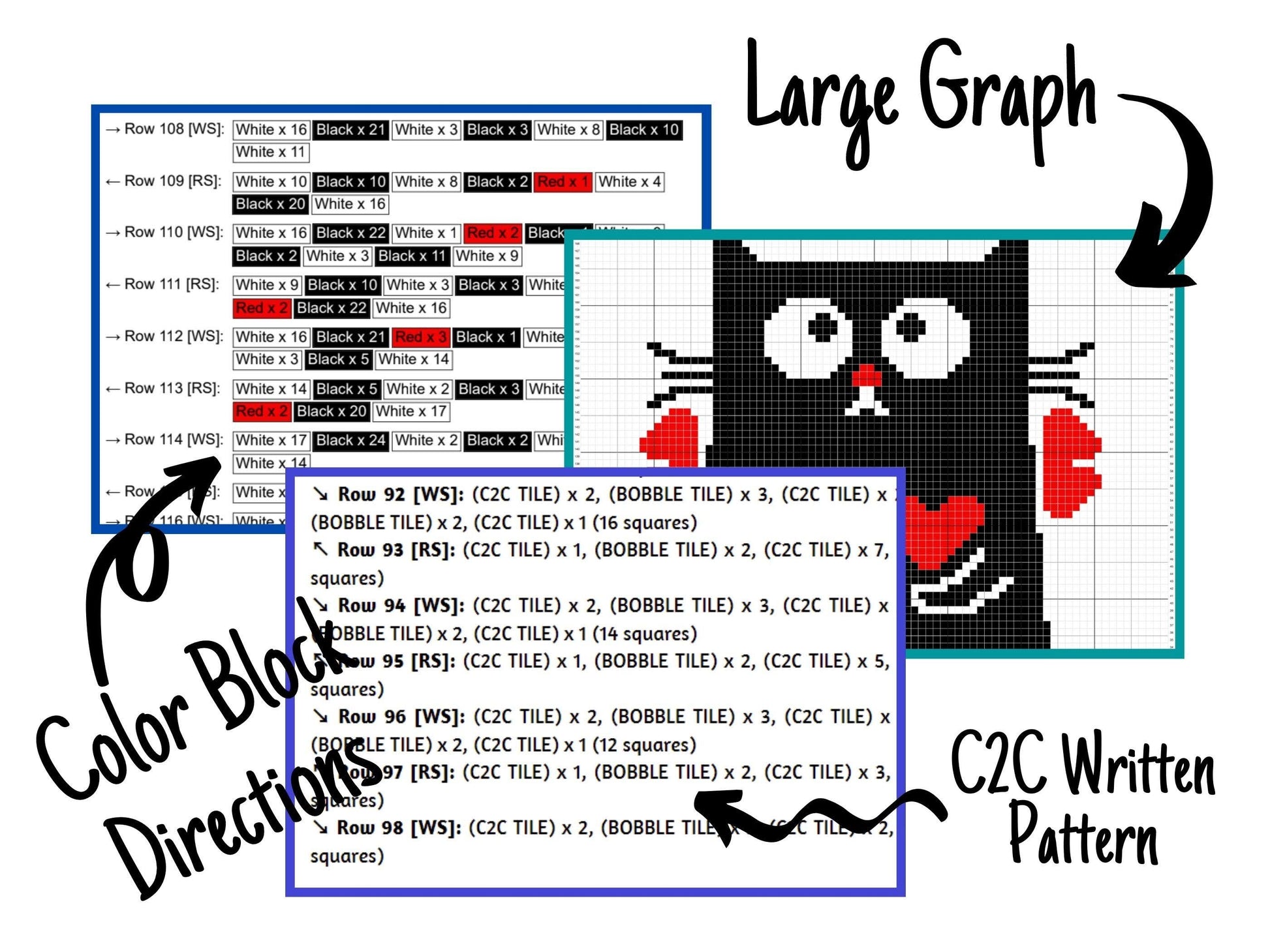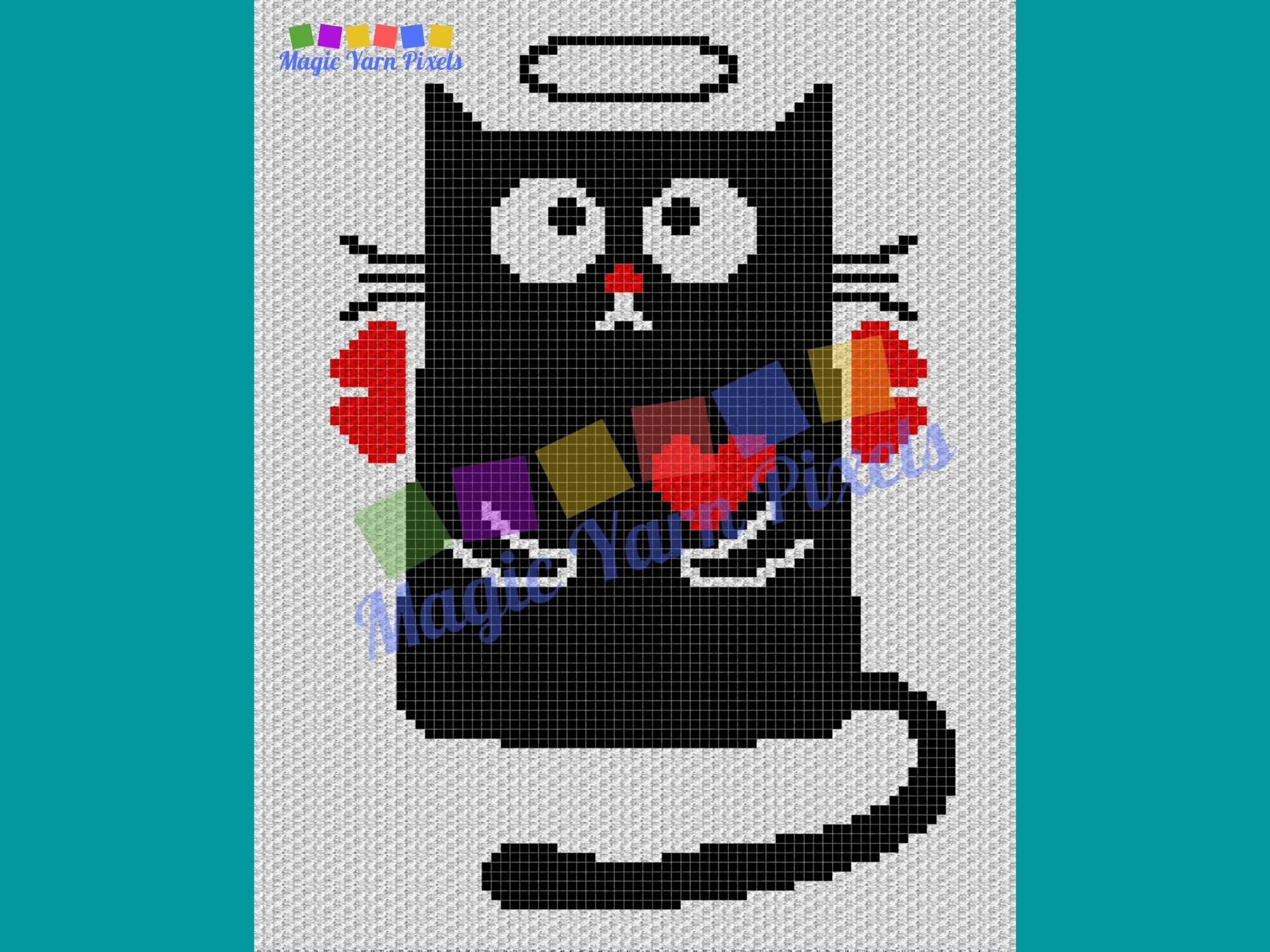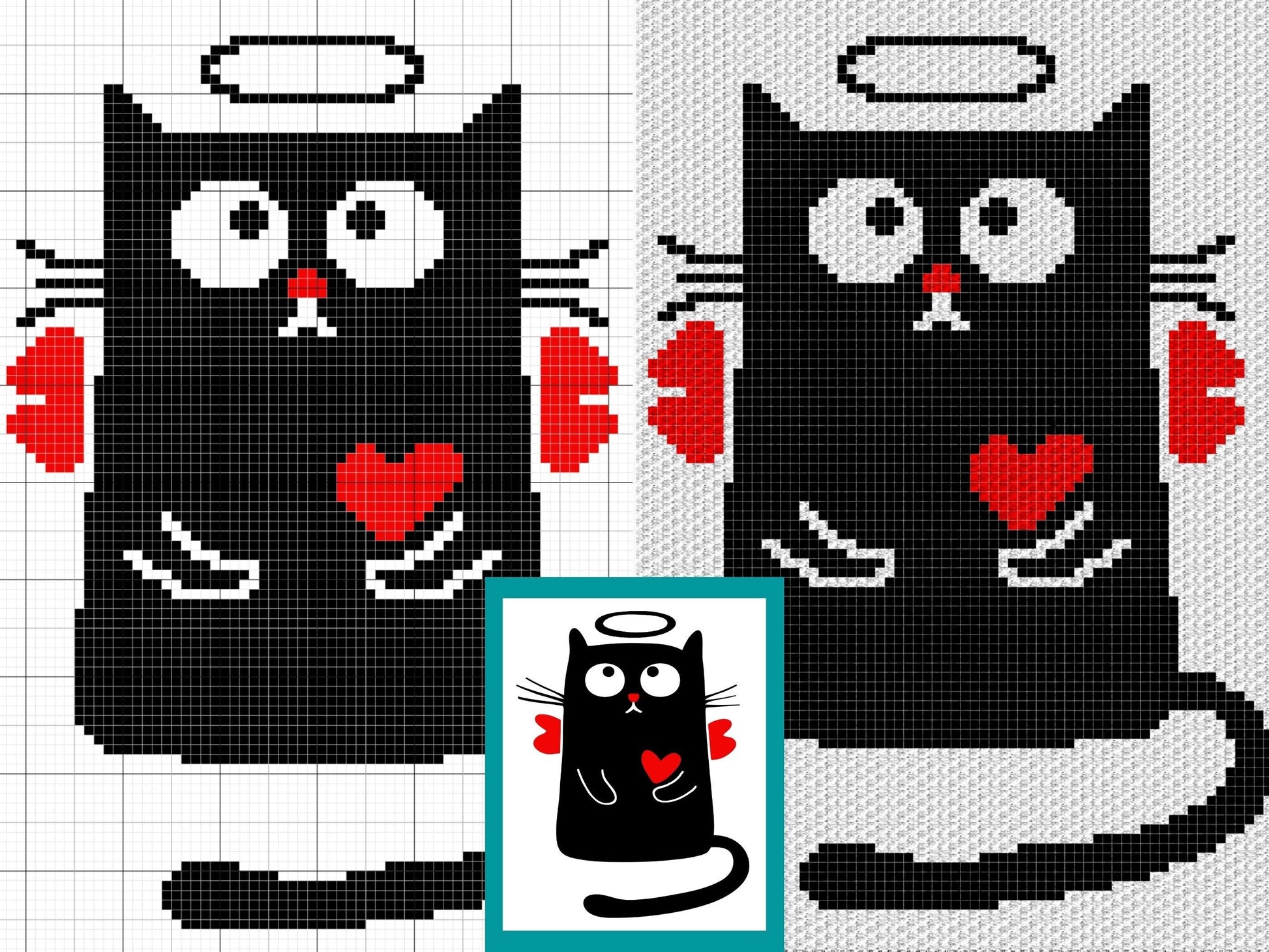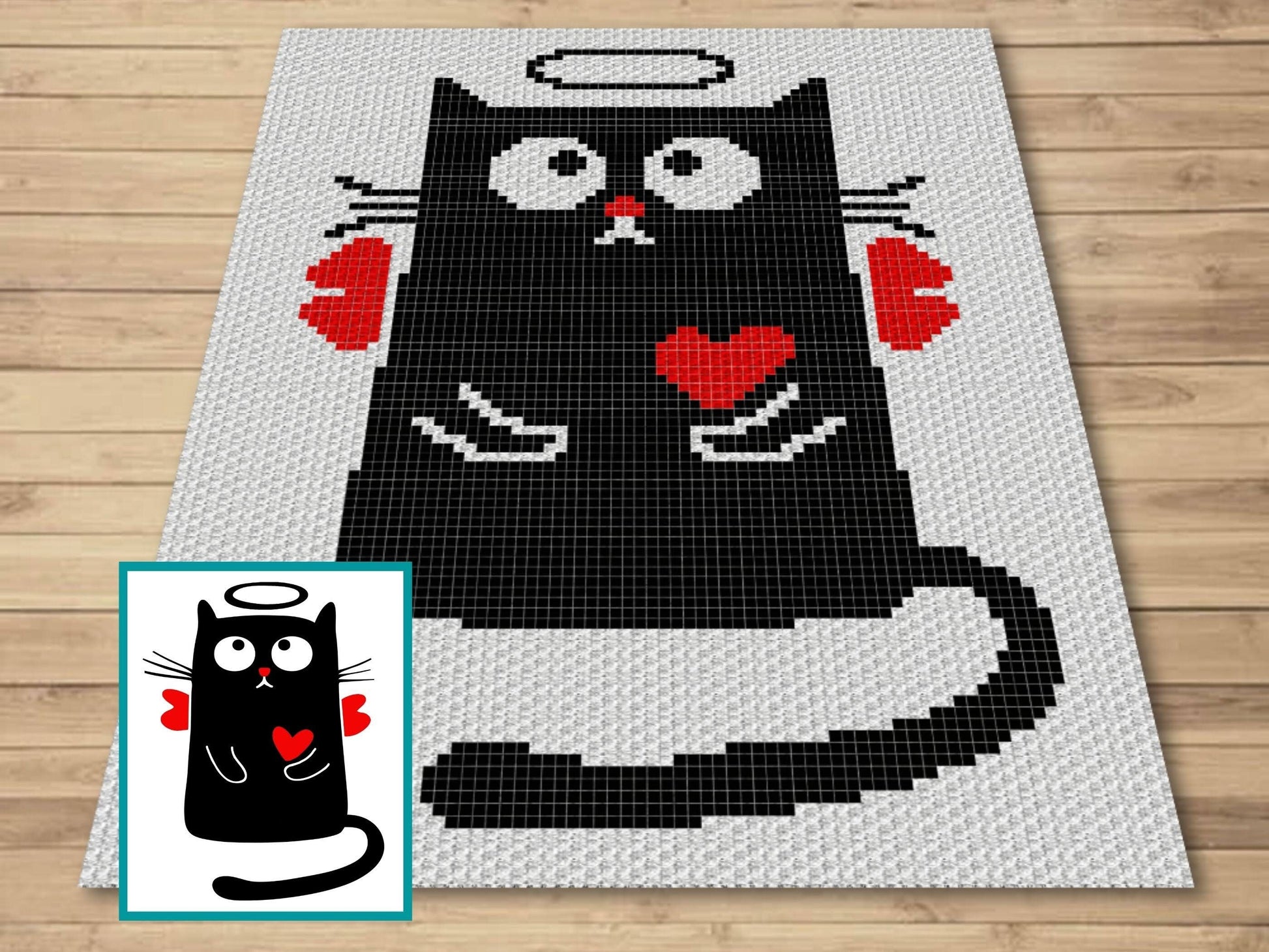 Valentines Cupid Cat Graph & Pattern C2C and Tapestry Crochet - C2C Cat Graphgan-Black Cat Crochet Blanket-Cat Crochet Baby Blanket DIY Gift