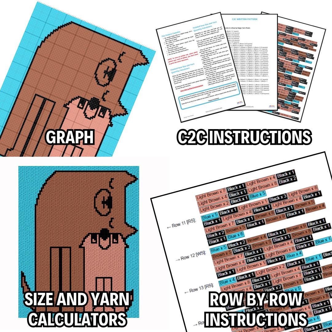 Valentines Dog Love Graph & Pattern C2C and Tapestry Crochet- C2C Dog Graphgan - Dog Puppy Crochet Blanket Dog C2C Blanket Gift Baby Shower