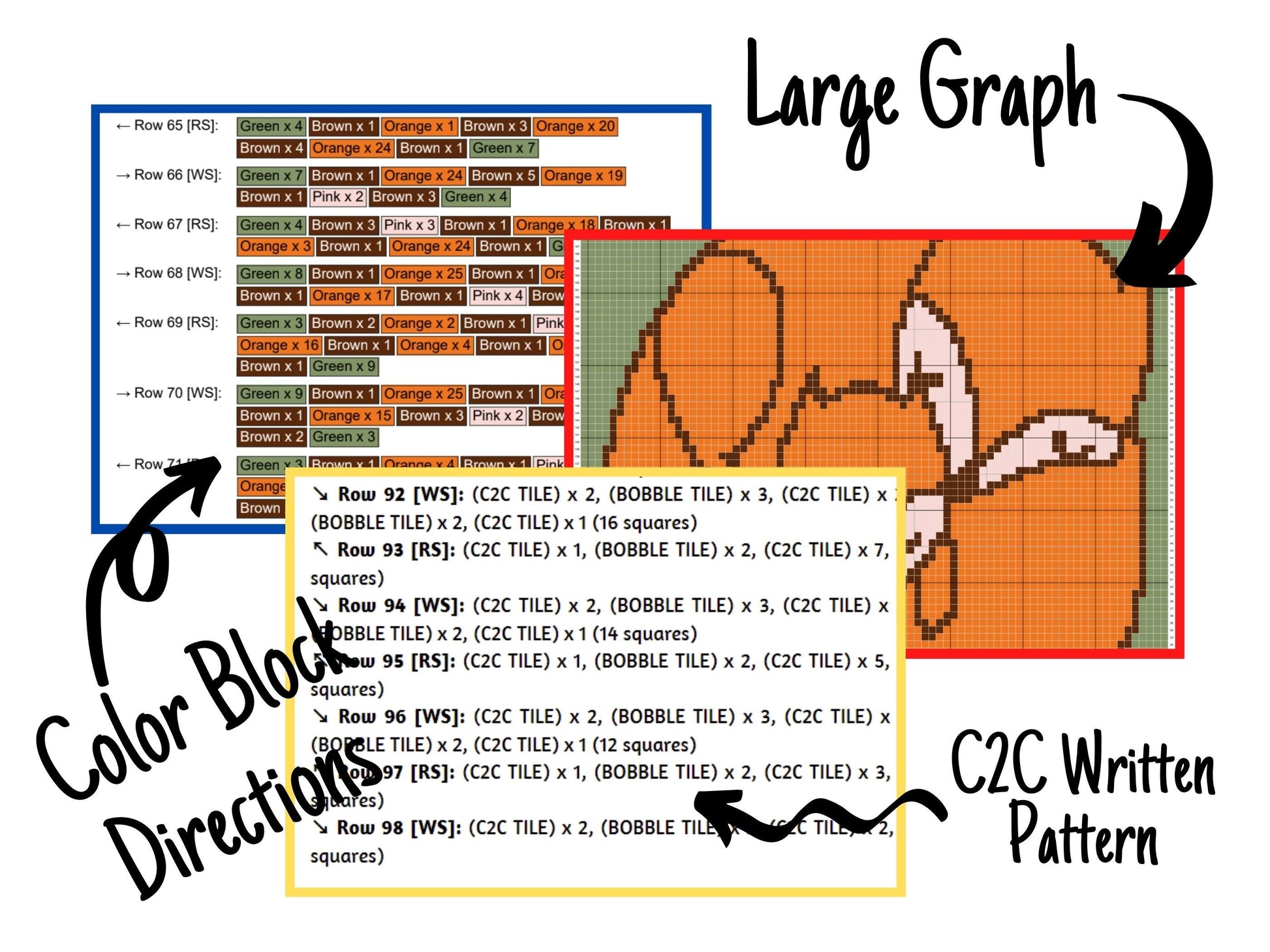 - the C2C color block pattern (starts from the lower right corner)