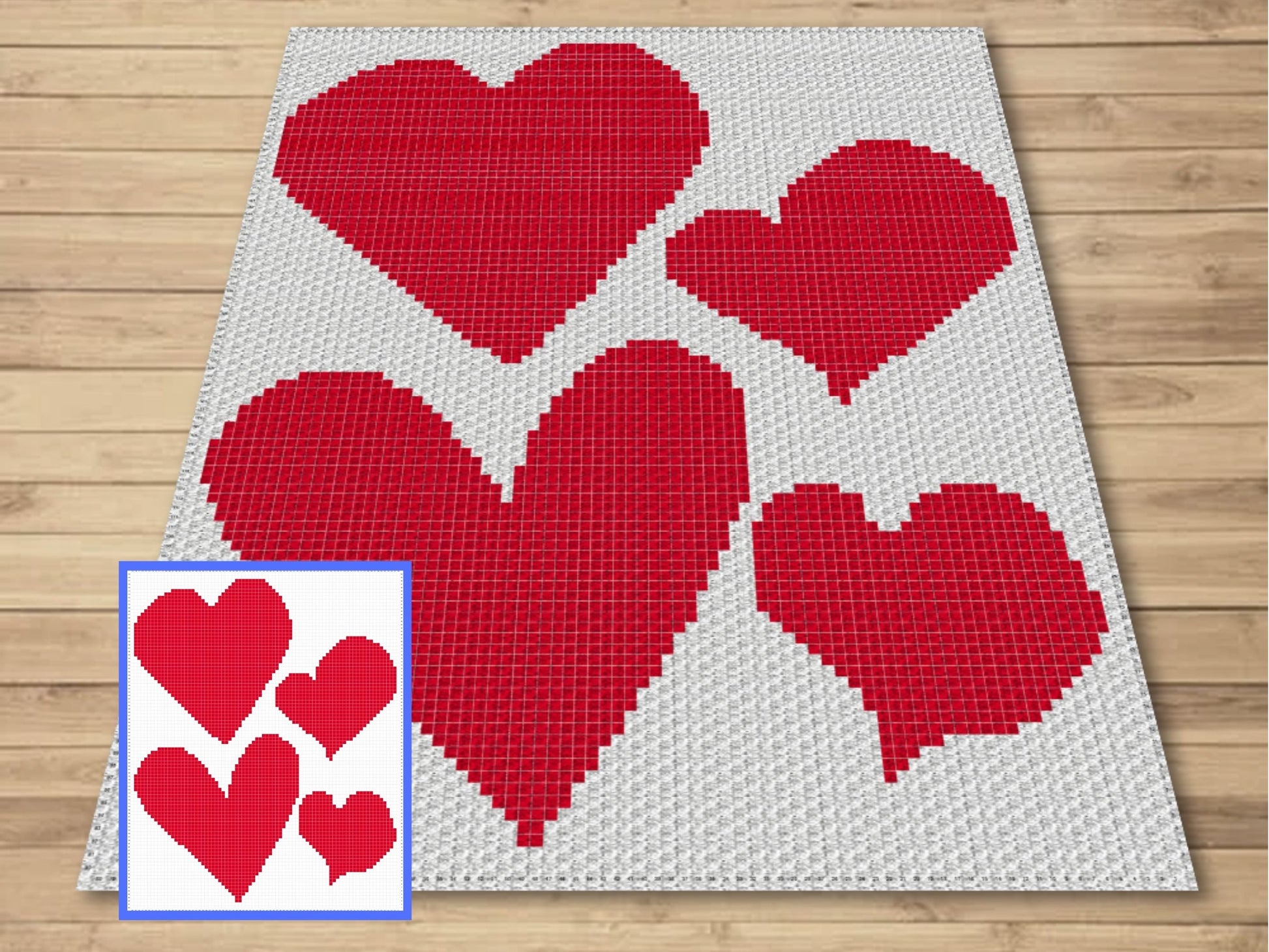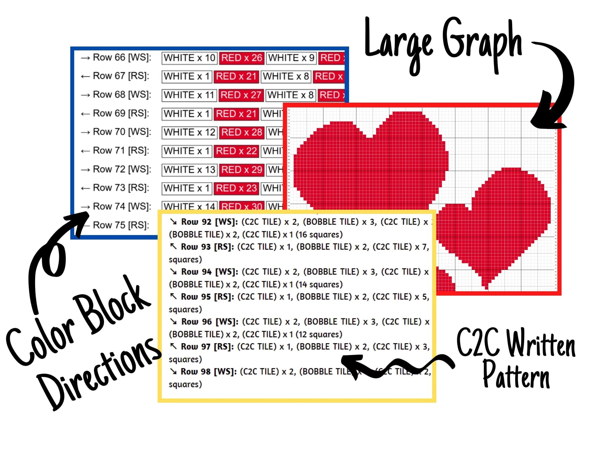 Valentines Hearts Graph & Pattern C2C and Tapestry Crochet - C2C Hearts Graphgan - Hearts Baby Crochet Blanket -Hearts C2C Blanket Gift Baby