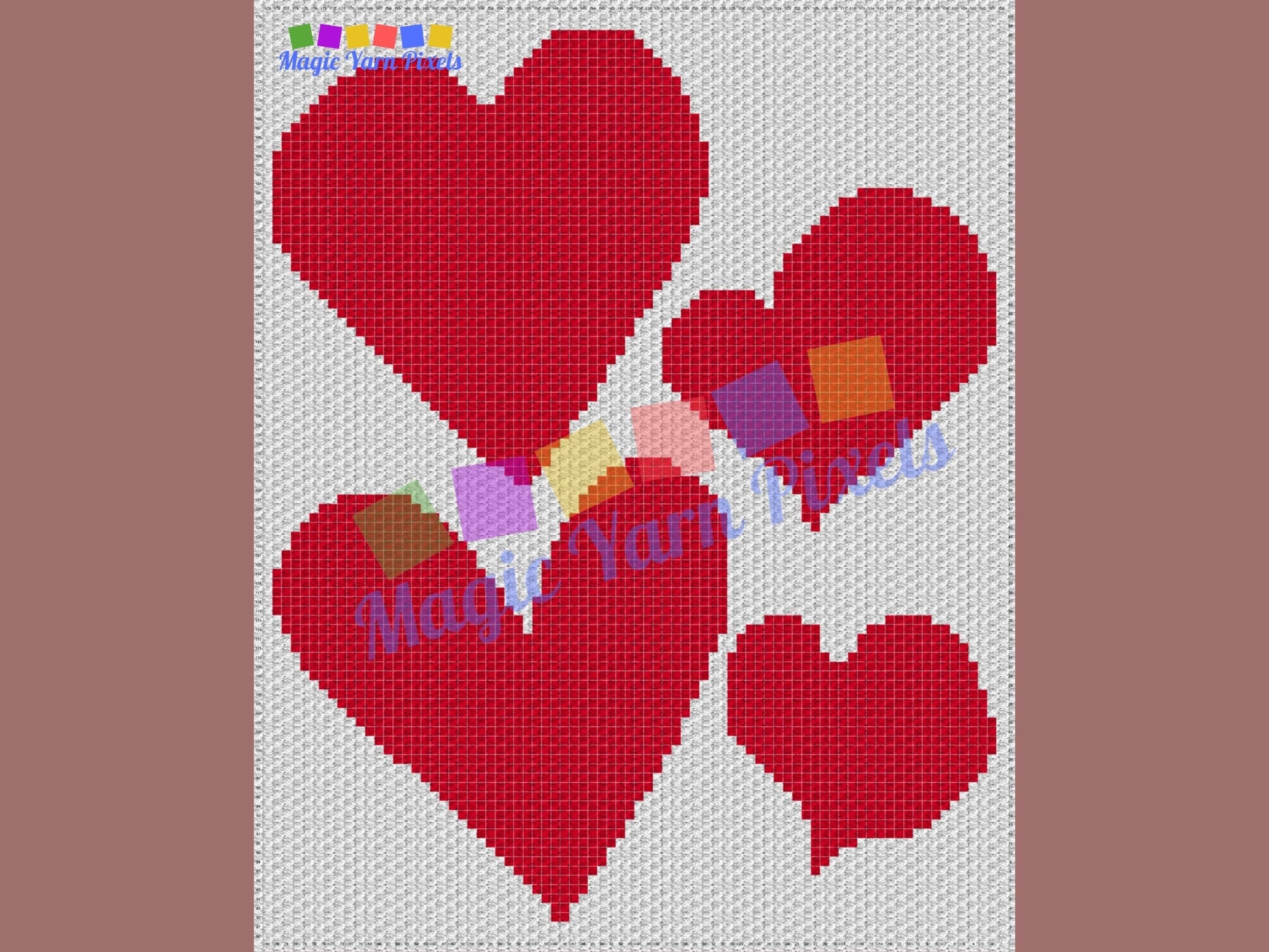 "Valentines Hearts" is a DIGITAL DOWNLOAD (available in PDF format only), written in ENGLISH ONLY that can be used to crochet a blanket using various techniques, such as C2C, Mini C2C, SC, HDC, DC, Tapestry Crochet etc.