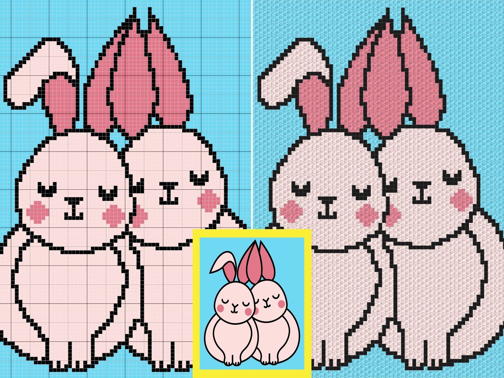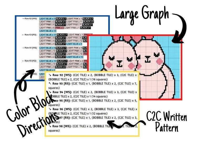 Valentines Love Bunny Graph + Written Pattern For C2C & Tapestry Crochet - Valentines C2C Graphgan - Crochet Love Bunny Blanket - Baby Gift