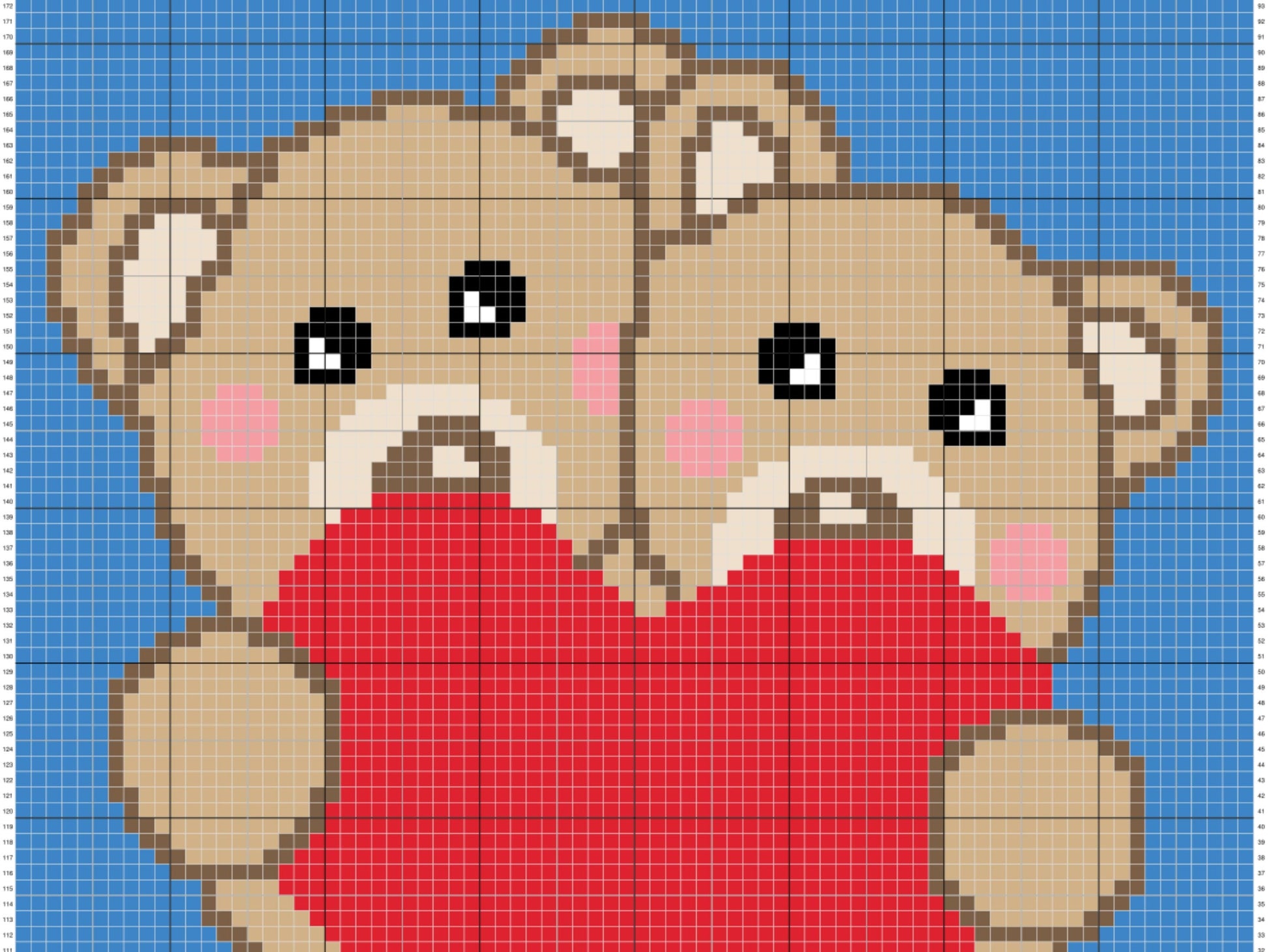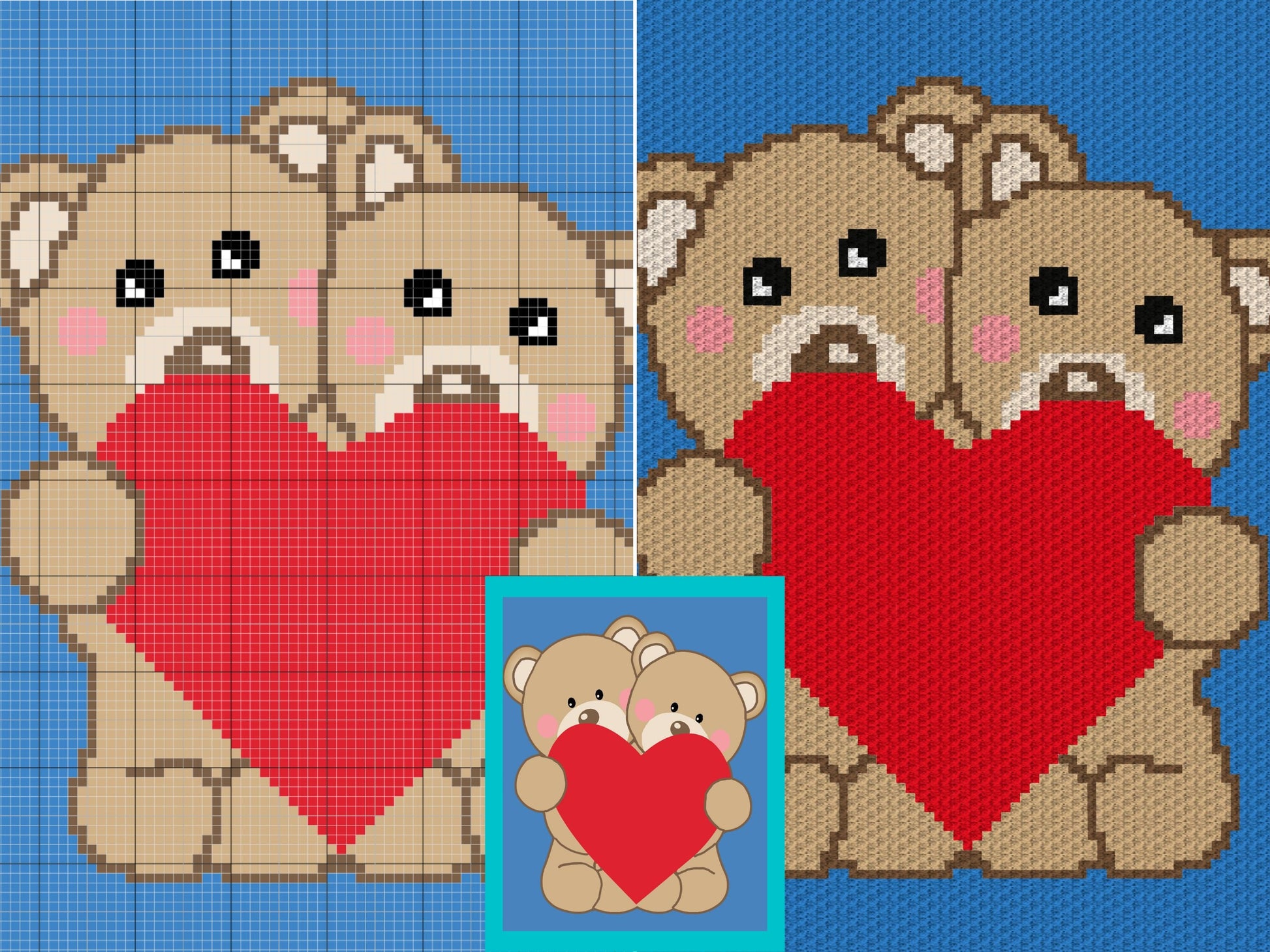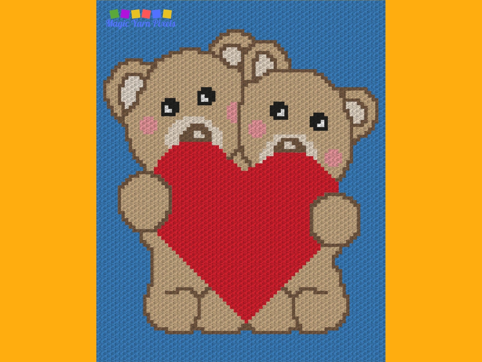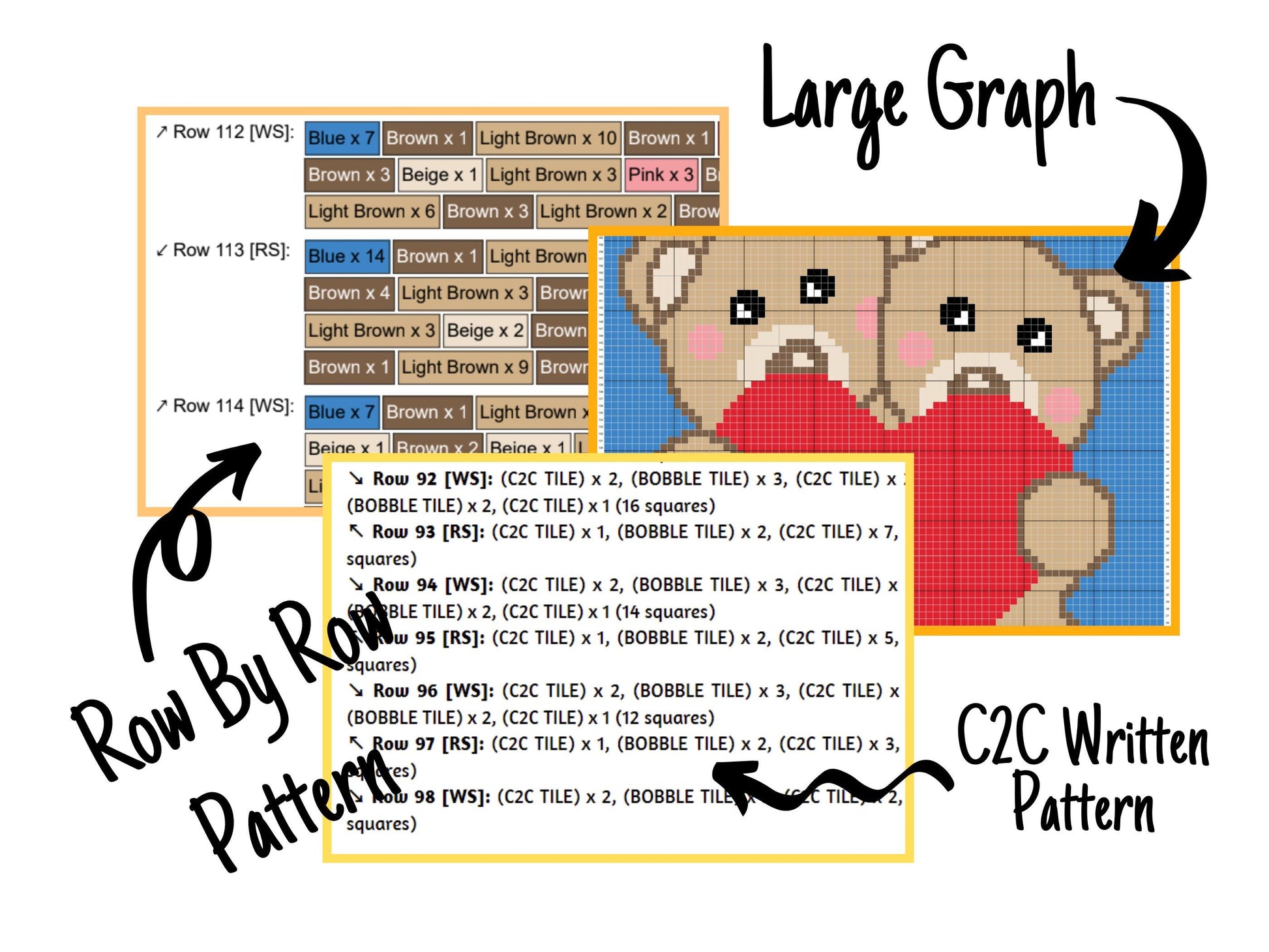 Valentines Teddy Bears Graph and Pattern C2C & Tapestry Crochet- Valentines Graphgan Crochet Teddy Bear Blanket - C2C Baby Bear Blanket Gift