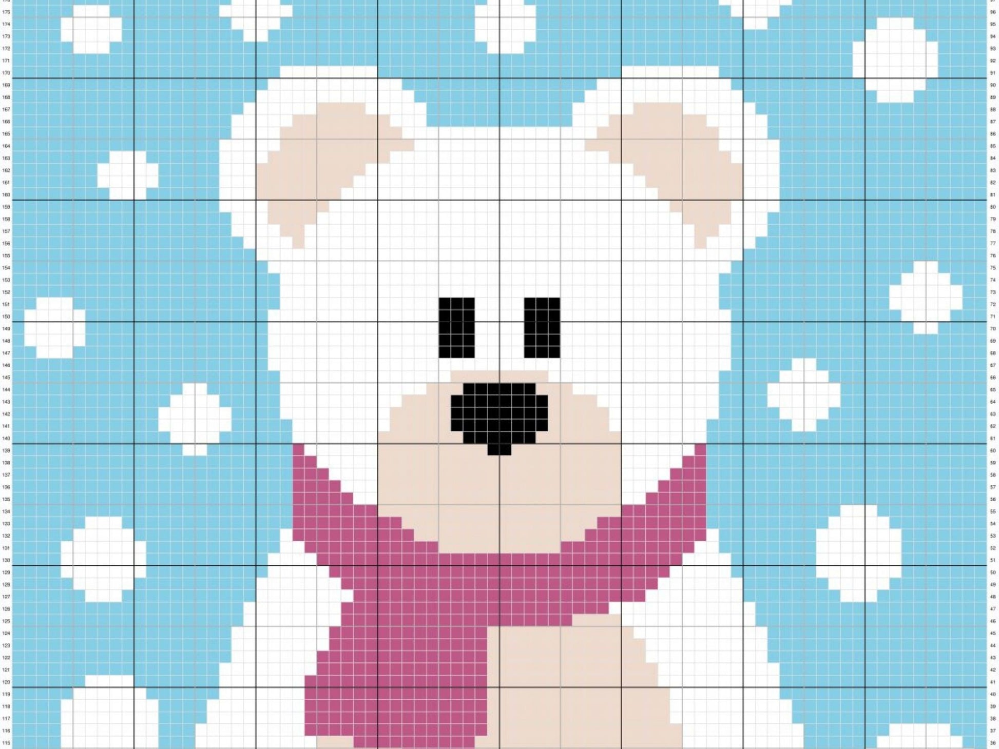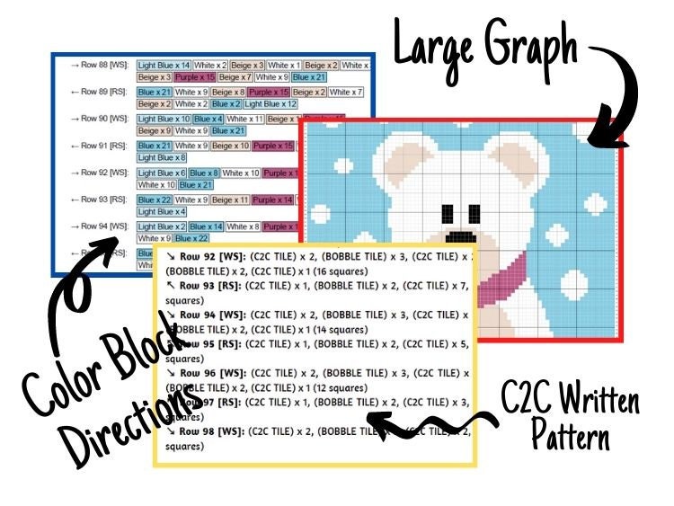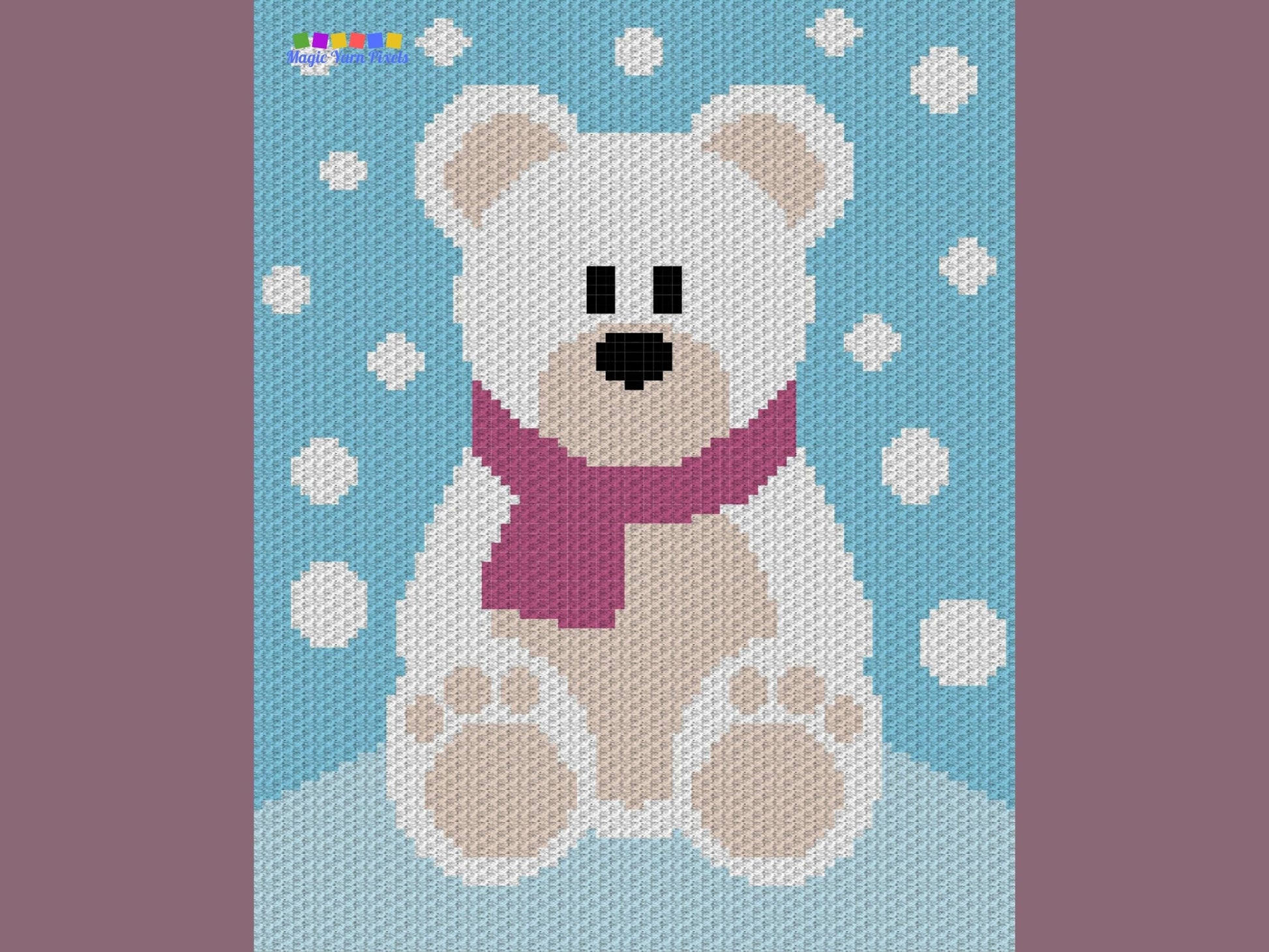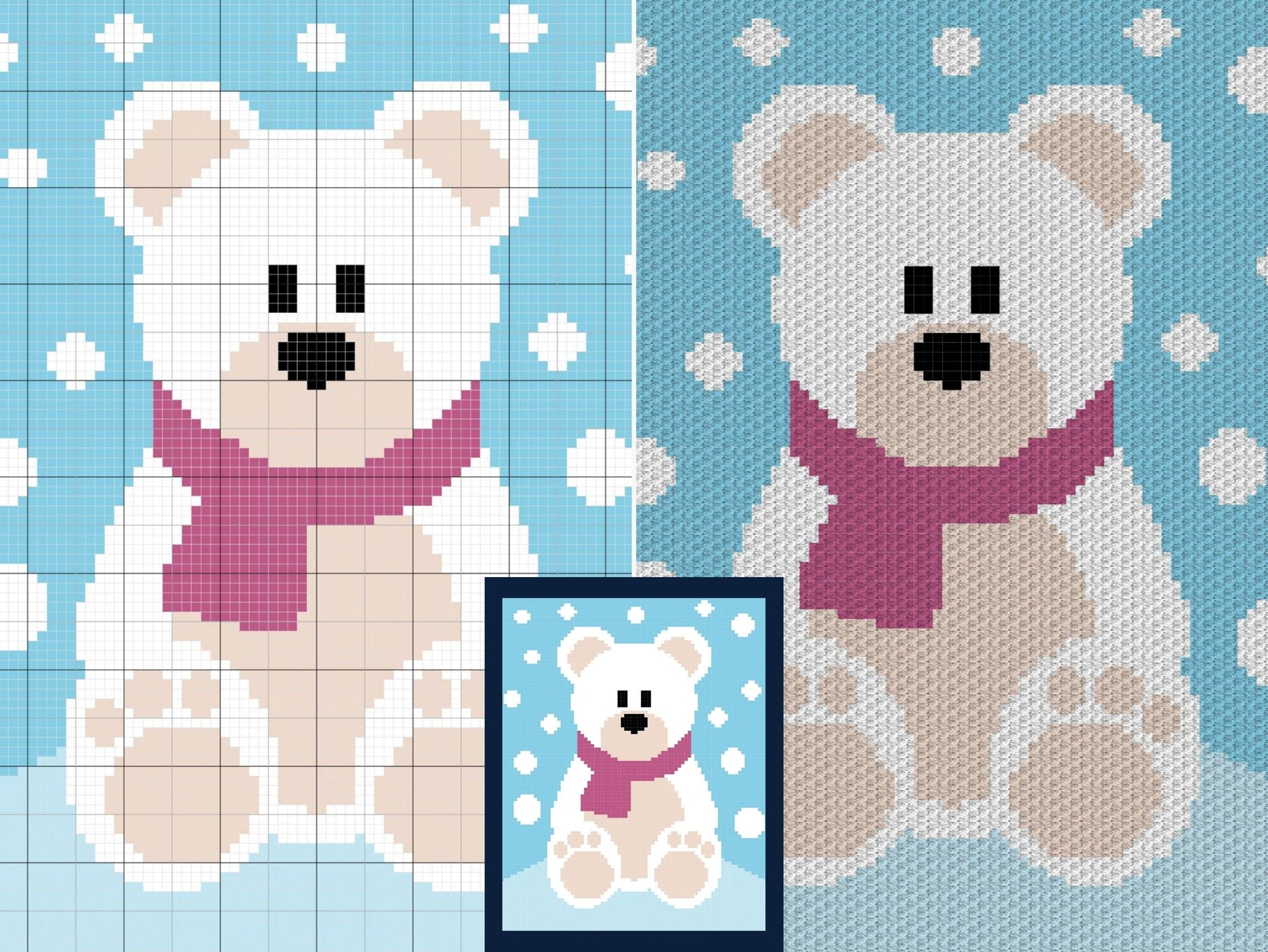 Winter Snow Polar Bear Graph + Written Pattern For C2C & Tapestry Crochet - Bear C2C Crochet Pattern - Winter Crochet Blanket - Bear Afghan