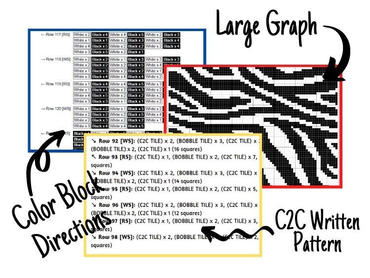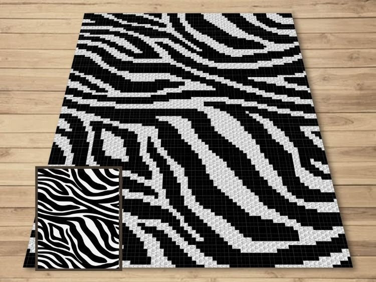 Zebra Print Graph + Written Pattern For C2C & Tapestry Crochet - C2C Graph Zebra Pattern- Animal Print Baby Crochet Blanket - Crochet Zebra